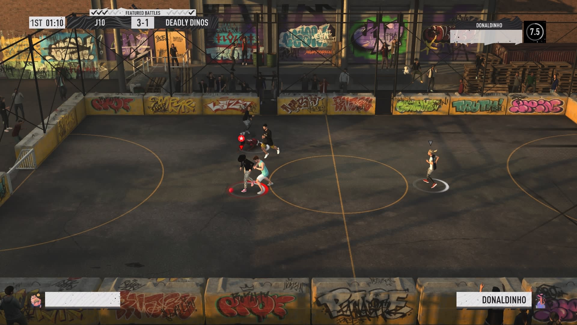 In Volta, finirete per cambiare non poco la vostra rosa di giocatori, soprattutto all'inizio. Per ogni partita vinta, potrete "rubare" un membro dell'altra squadra, facendo dei piccoli upgrade mano a mano che procedete. Si è quindi tentati di cambiare e aggiustare costantemente il vostro team ad ogni partita, ed è pur vero che non ha senso essere fedeli alla vostra formazione iniziale composta unicamente da giocatori quotati a 70. Tuttavia, il loro punteggio non è l'unica cosa che conta. Chiaramente vorrete avere i giocatori giusti nella giusta posizione, ma dovrete anche controllare le loro statistiche per assicurarvi che si adattino al vostro stile di gioco, controllare quali mosse speciali possano eseguire e controllare quale formazione prediligano. Otterrete risultati migliori con tre giocatori con un punteggio di 83 nella giusta formazione che con un paio di 84 e un 85 con mosse da tre stelle che giocano nei ruoli sbagliati e in una formazione per cui non sono adatti. Giocate in modo intelligente e capite cosa vogliono i vostri giocatori.