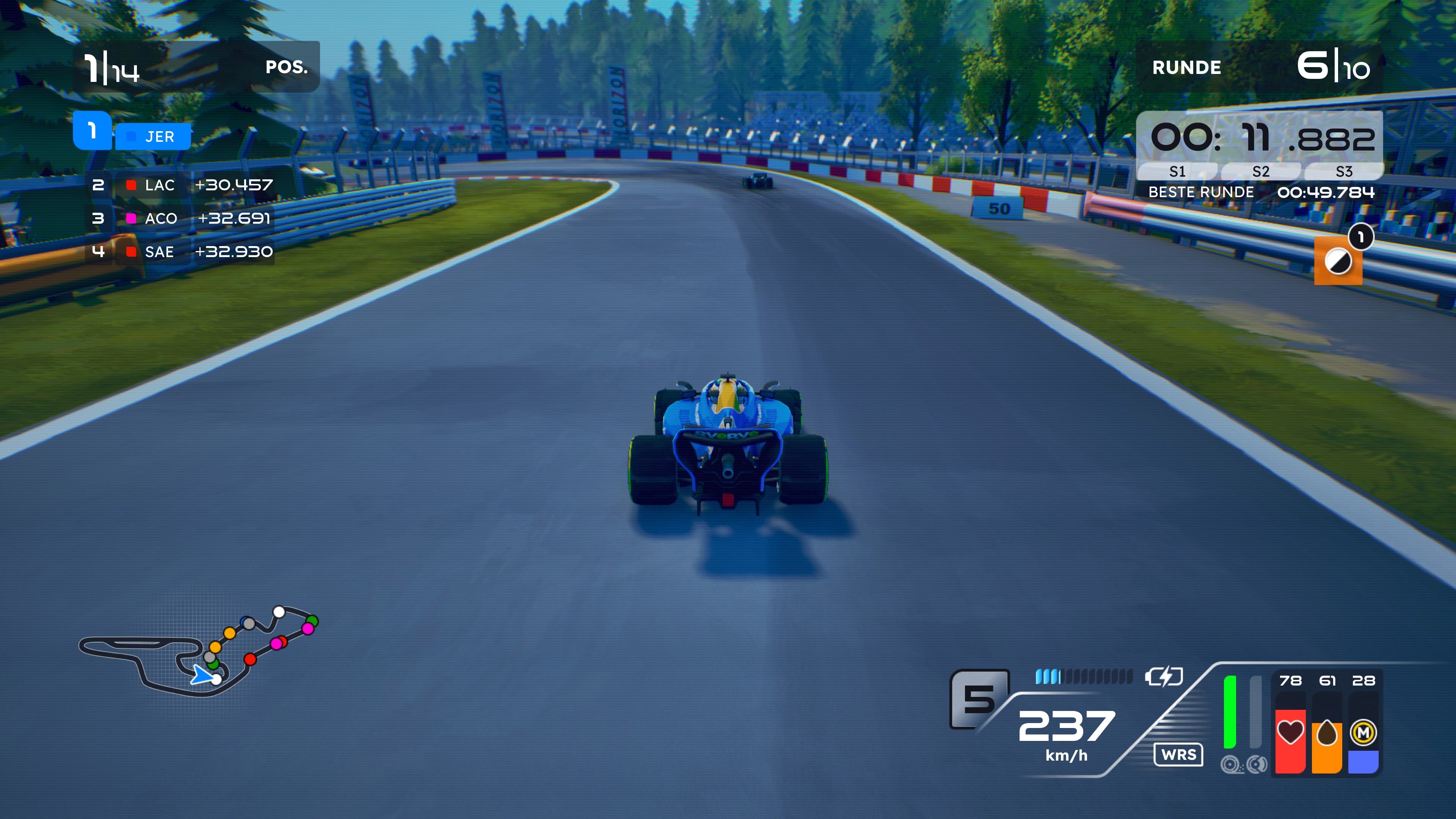 Tuttavia, l'IA agisce in modo estremamente intelligente ed ha un comportamento di guida realistico che, a seconda del livello di difficoltà, richiede molto impegno da parte vostra. Questo significa che anche le gare in singolo sono generalmente emozionanti fino alla fine.