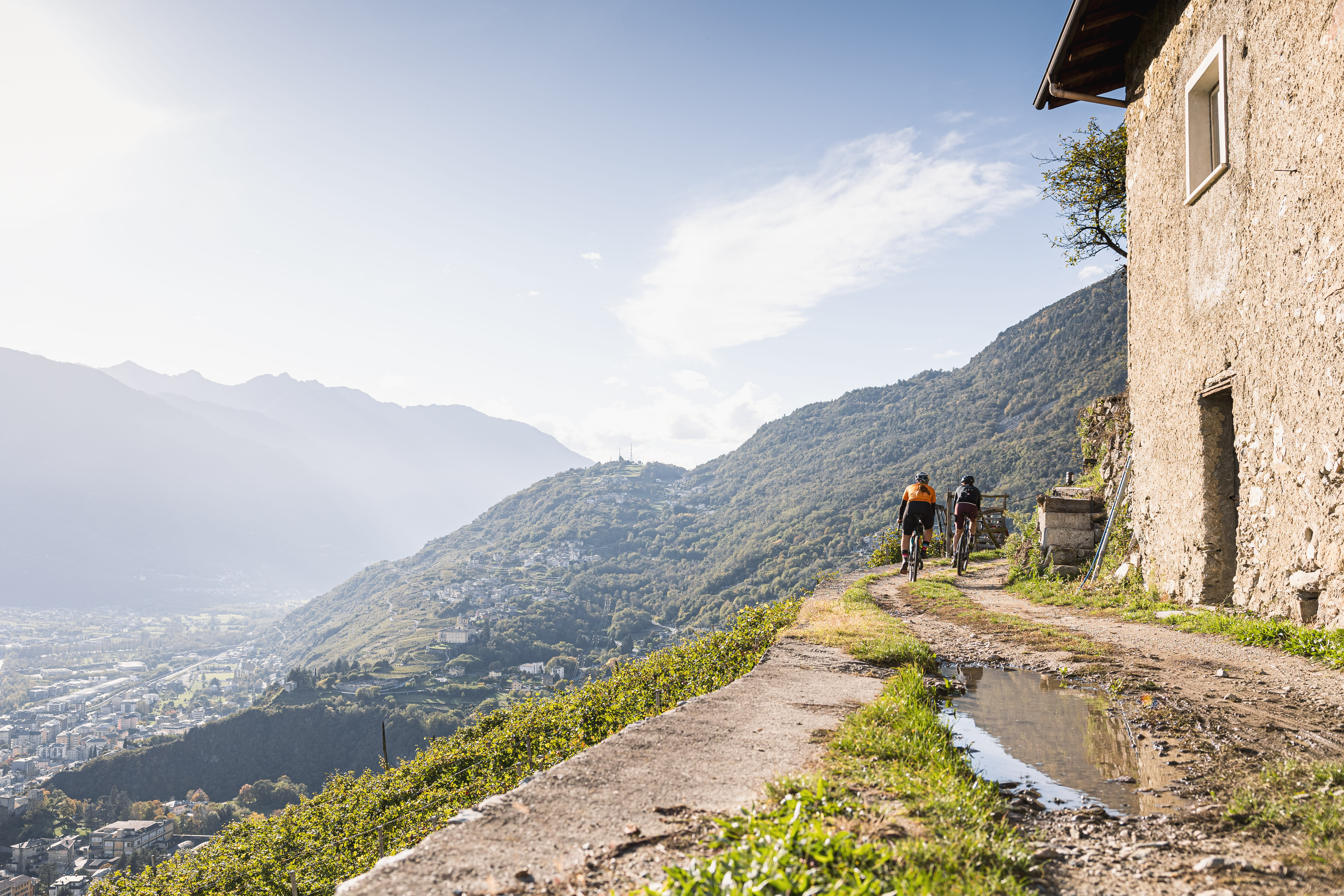Le strade rurali sono le vie che abbiamo percorso, quelle che attraversano la Valtellina che coltiva e produce i suoi prodotti più noti: il vino ovviamente, ma anche mele, segale e grano saraceno. Vie che – oggi come un secolo fa – sono la crasi simbiotica tra uomo e natura, con i terrazzamenti "eroici" che delimitano le varie coltivazioni di vite. Gli scorci lasciano a bocca aperta, e non solo per la meraviglia: le salite che si inerpicano tra i vitigni, come la Fracia oppure quella del Vecchio Torchio lungo la Via dei Terrazzamenti e i meleti di Chiuro. E ancora luoghi ricchi di storia, come il borgo medievale di Ponte in Valtellina, i mulini e i palazzi storici di Teglio (dove il pizzocchero è una religione), il Castel Grumello, che domina d'incanto la valle sottostante e il monumentale santuario della Santa Casa a Tresivio. Ancora, le formazioni rocciose delle Piramidi di Postalesio e a Sondrio la passerella sulla gola delle Cassandre e il quartiere storico di Scarpatetti, che si attraversano verso il finale.