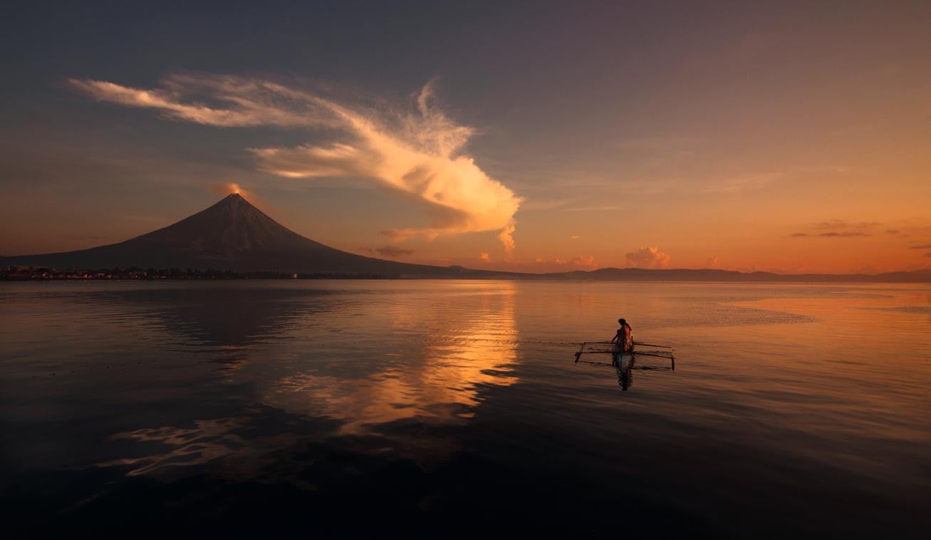 2.462 metri di altezza e 40 eruzioni negli ultimi cinque anni; il vulcano Mayon è qui immortalato dal fotografo locale Jon Erick Dizon, più abituato a fotografare matrimoni.
