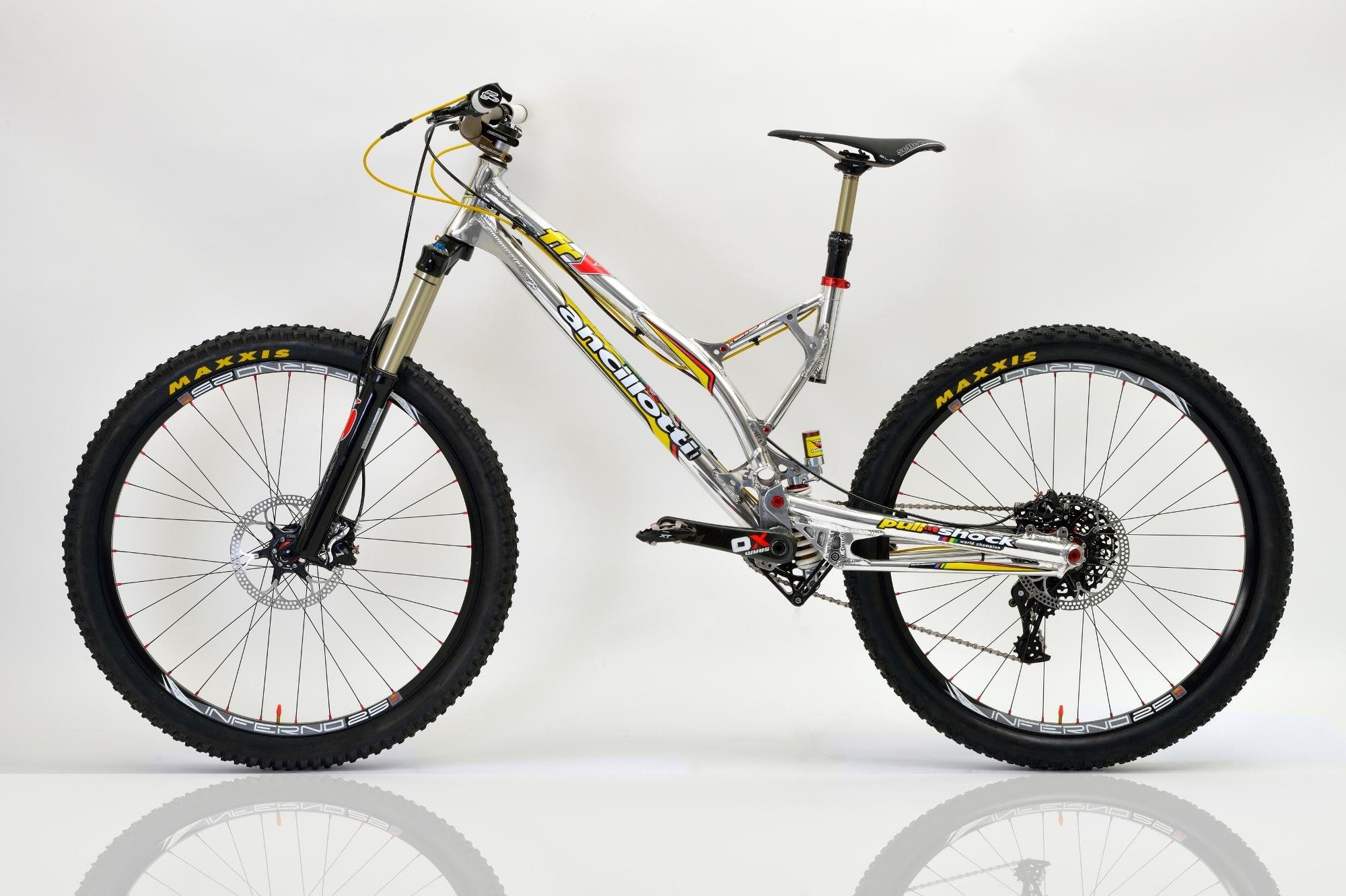 Togliete a questa bici i suoi adesivi e il suo logo dal tubo sterzo, e sarete ancora in grado di identificarla come italiana. Ancilloti non è solo un originale marchio europeo. Può essere una piccola azienda, ma quando si tratta di downhill ad altissimi livelli non delude, avendo lanciato Brook MacDonald e Wyn Masters sui grandi palcoscenici mondiali, con il primo laureatosi campione del mondo junior proprio in sella a una Ancillotti.
