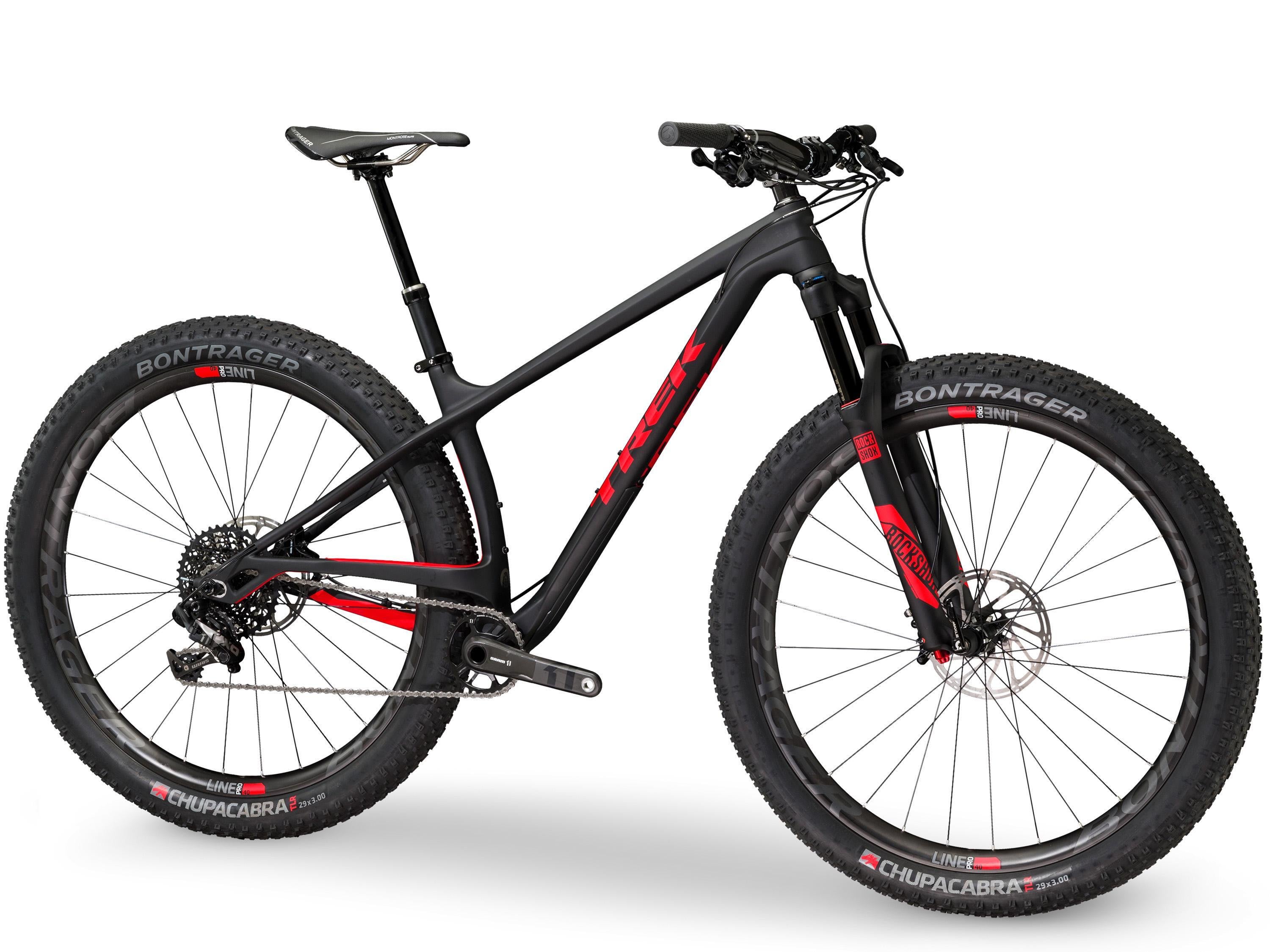 Desiderate ardentemente per una hardtail in fibra di carbonio, con ruote da 29" e gommoni in stile fat? Allora dovete investire sulla Trek Stache. Il brand statunitense è noto per le sue soluzioni eccentriche, come la sua storica 69er che sfoggiava una ruota anteriore 29er e una posteriore da 26". La Stache riesce a fondere insieme le ruote grandi - 29" - con quelle grosse - da 3" - oltre alle accelerazioni scattanti e la guida svelta che solo un telaio in carbonio con carro super compatto può offrire. Inoltre i forcellini posteriori Stranglehold permettono di usare indifferentemente ruote 29"+, 29" e da 27,5".