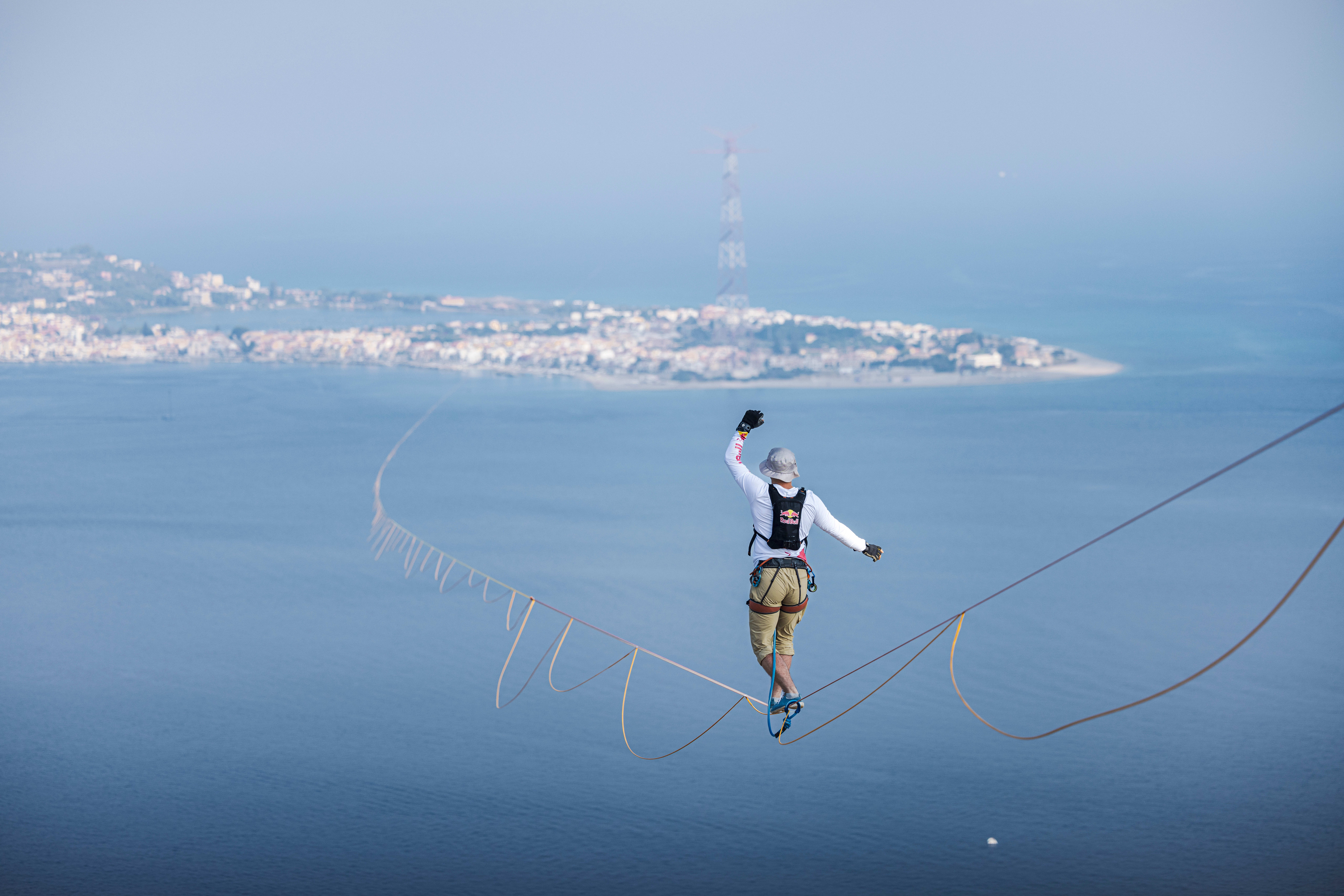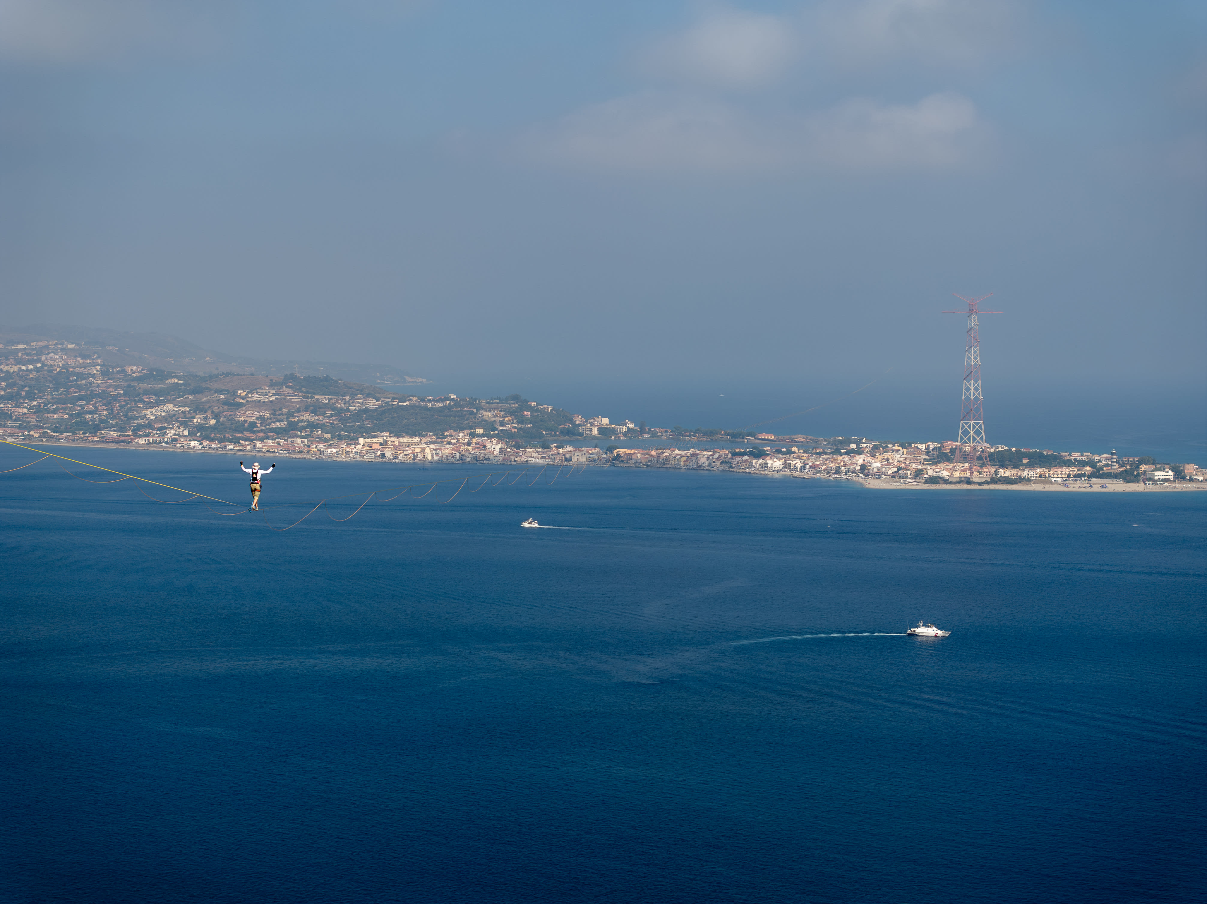 Jaan Roose ce l'ha fatta. Sconfiggendo il caldo, il vento e la gravità, l'atleta Red Bull ha portato a termine un'impresa che non era riuscita mai a nessun uomo prima d'ora: attraversare lo Stretto di Messina camminando lungo una slackline larga appena 1,9 cm e tesa per più di 3,6 km a oltre 200 metri di altezza sul livello del mare.