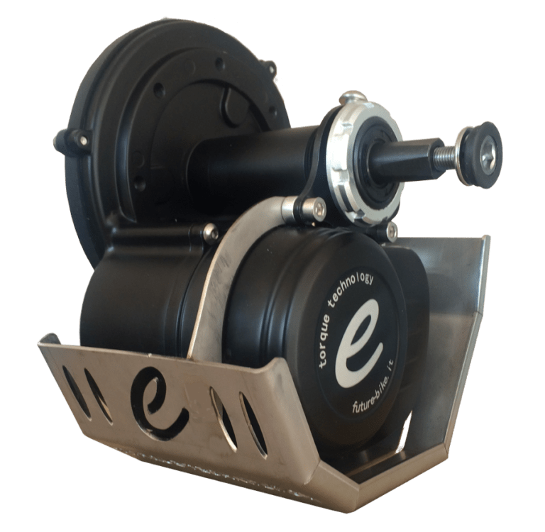 La produzione di kit di trasformazione di Future Bike è vastissima, e il modello di punta del catalogo è il motore centrale Active Torque, un sistema basato sul montaggio al movimento centrale dell’unità. Il funzionamento avviene attraverso un sensore di coppia, che attraverso la continua analisi della spinta del biker decide il supporto da conferire.
