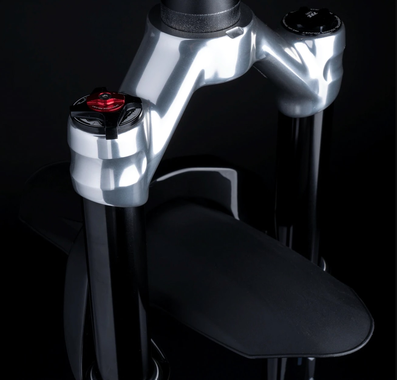 RockShox ha abbandonato la produzione di questo modello top di gamma con l’impiego del carbonio per la testa, ed è per questo che ricompare una struttura in alluminio anodizzato. Nella parte elastica, la camera d’aria sfrutta la tecnologia Debonair con un comportamento perfettamente bilanciato tra assorbimento dei piccoli urti e un supporto consistente nelle fasi centrale e finale di escursione.
