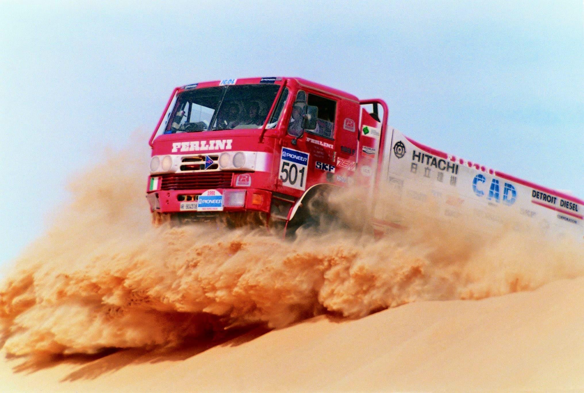 La storia di Perlini alla Dakar è piena di curiosità: in primis per il periodo in cui è andata in scena, da fine anni Ottanta ai primi anni Novanta, quando la rete iniziava a farsi largo solo tra i nerd, ma forse anche perché dietro non c’era nessun personaggio da copertina e nessun colosso automotive con montagne di denaro da investire. Nonostante ciò Perlini, uno dei più importanti player mondiali nel settore del dumper fuoristrada, ha conquistato quattro successi consecutivi nella categoria camion tra il 1990 e il 1993: un poker risucito solo a Mercedes-Benz negli anni Ottanta (con il successo italiano nel 1986 firmato Giacomo Vismara e Giulio Minelli) e ai russi Kamaz tra il 2002 e il 2006. In quegli anni l’azienda di San Bonifacio ha fatto conoscere al mondo quello stile italiano fatto di pazzia, genialità e incoscienza, sia in termini meccanici sia di spirito.