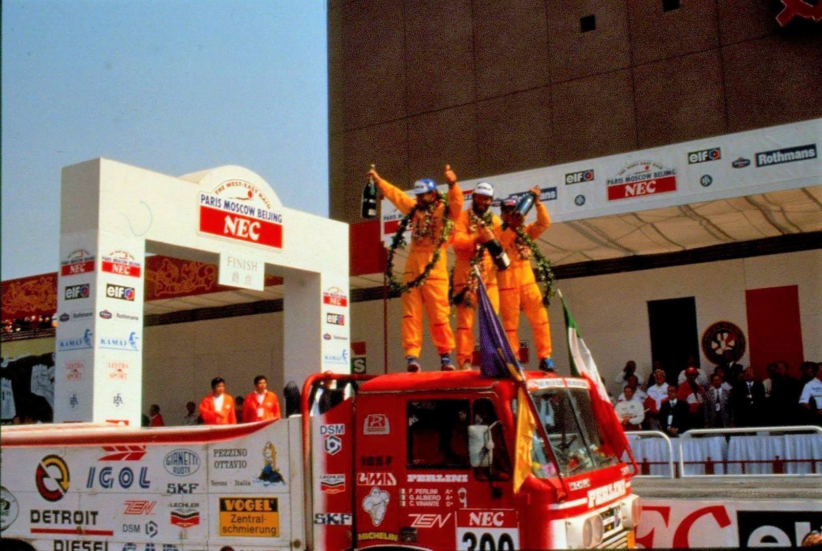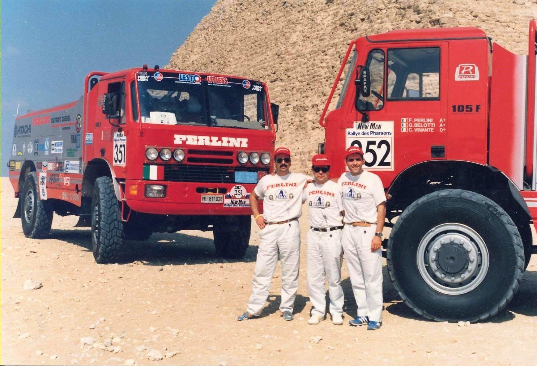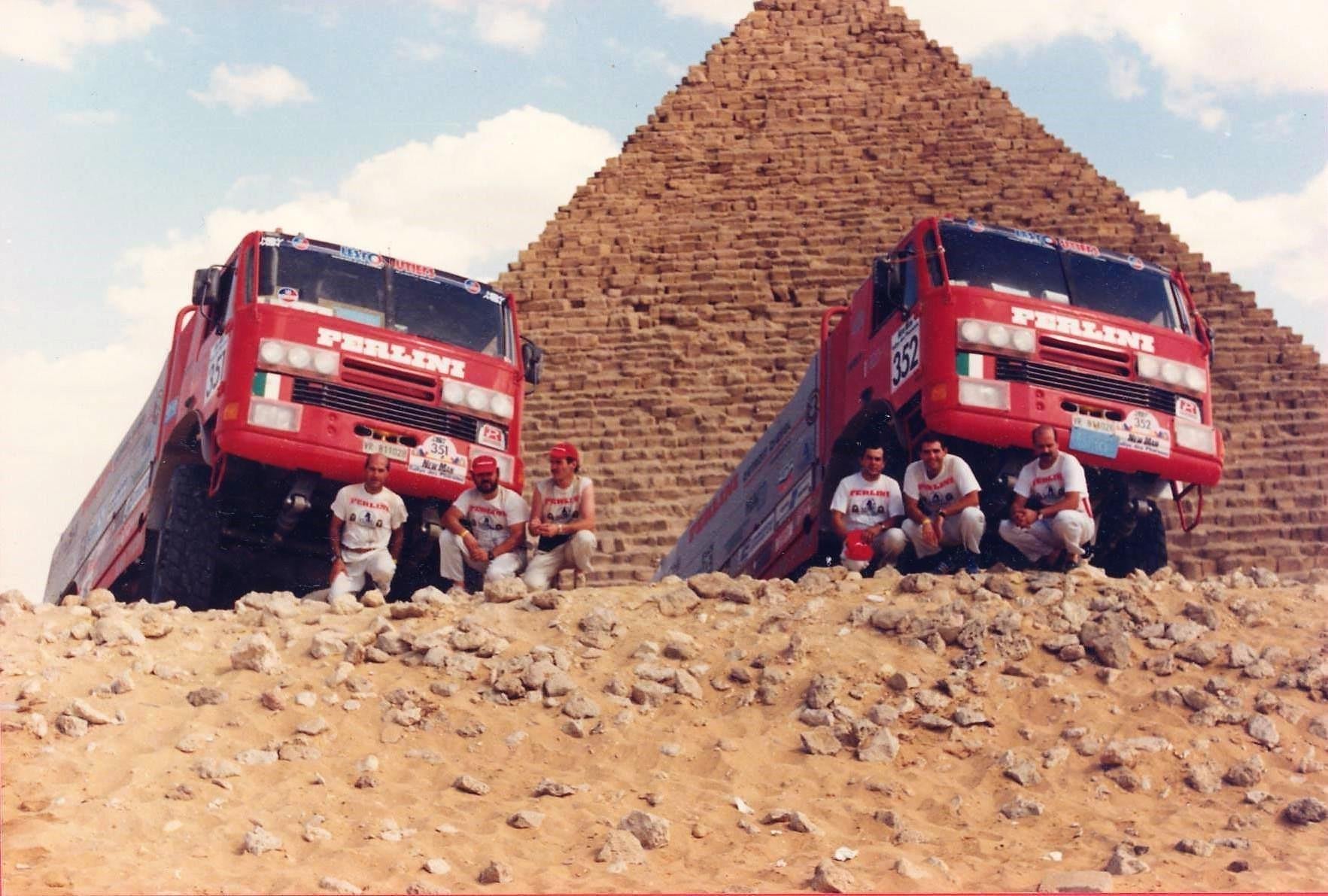 Dietro le vittorie ci sono molti uomini in gara ma anche tanti dietro le quinte: tra loro Francesco Perlini, il figlio del fondatore Maurizio e due volte vincitore nel 1992 e nel 1993 con la collaborazione del fido scudiero Giorgio Albiero, sedici Dakar da pilota e copilota a partire dal 1989, passando per Claudio Vinante, unico denominatore comune di quella squadra Perlini che nel 1990 coglie il primo storico successo insieme a Giorgio Villa e Giorgio Delfino. Un’edizione che vede al secondo posto il secondo truck Perlini con a bordo Jacques Houssat, Thierry de Saulieu e Danilo Bottaro, e che celebra il secondo trionfo tra le moto del leggendario Edi Orioli. Insomma, la Dakar più trionfale di tutti i tempi per i colori italiani che l’anno seguente vede Houssat, de Saulieu e Bottaro conquistare stavolta il gradino più alto del podio, inseguito dal 1988.