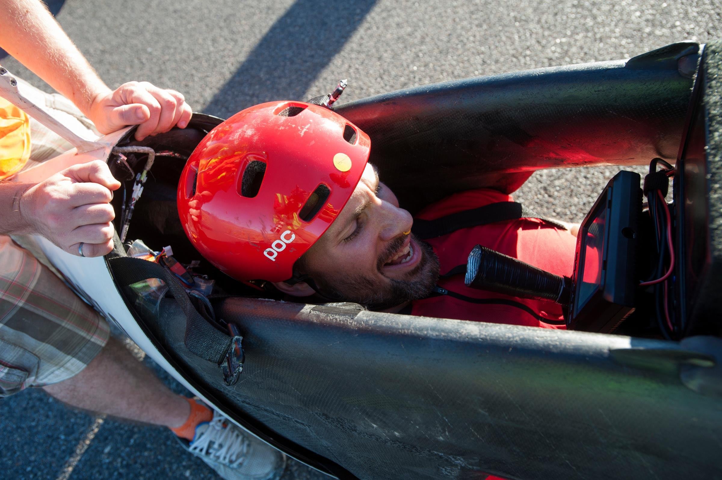 Tu sei il pilota, Todd, quanto è stato impegnativo pedalare Aerovelo sino al record?