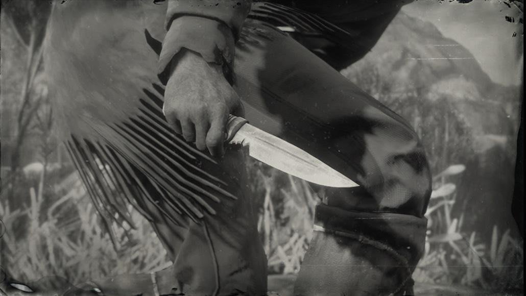 Un coltello raro che sembra essere stato ricavato dalle corna di un cervo. Può essere raccolto sul luogo che ha ospitato una battaglia all'ultimo sangue tra un orso e un cacciatore vicino al ranch Hanging Dog.