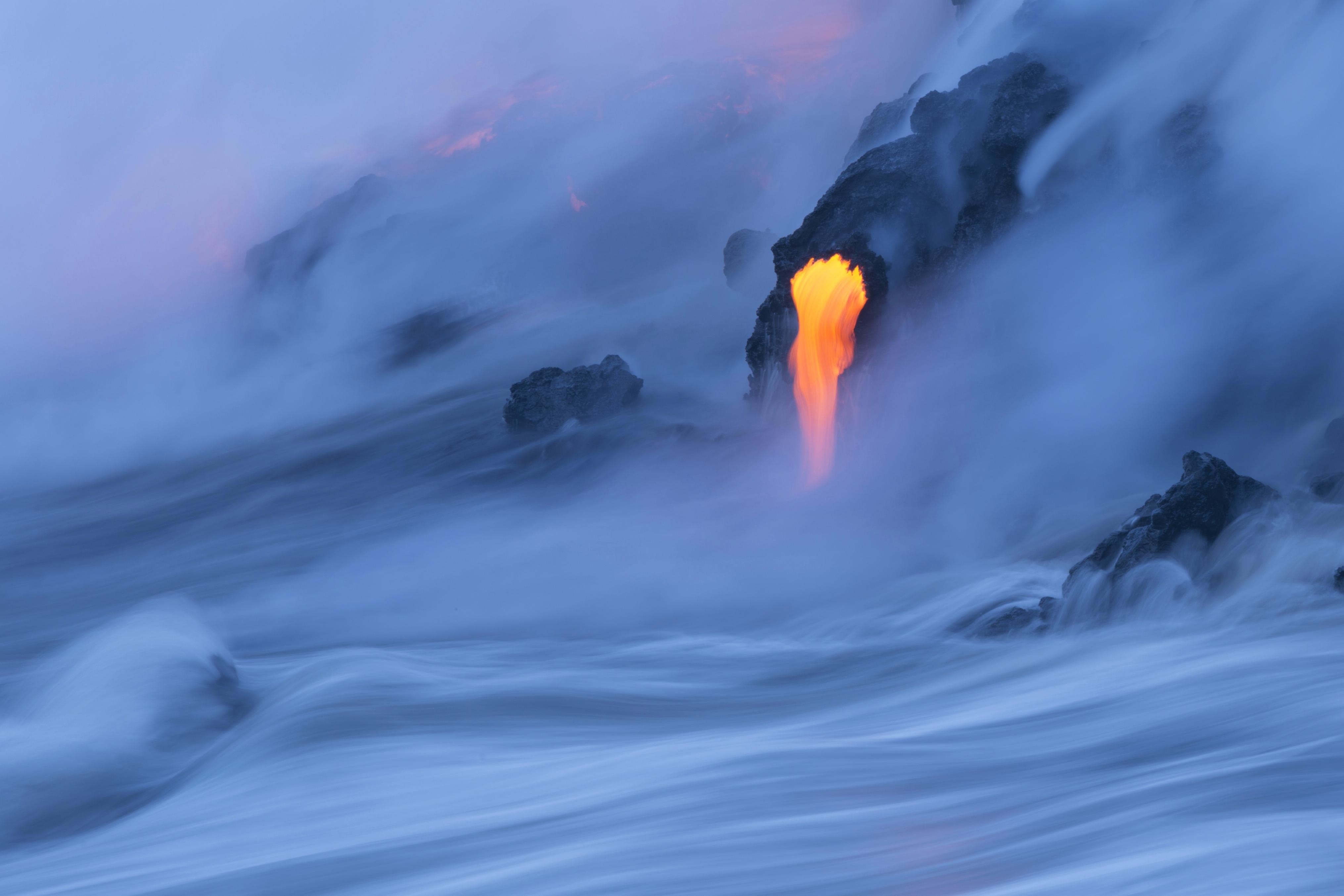 溶岩流が2014年に止められるまでは、ボートツアーで溶岩が海に流れ込む様子が確認できたが、今はハレマウマウ・クレーターが活動中で、ここでは新たな溶岩湖が生成されている。