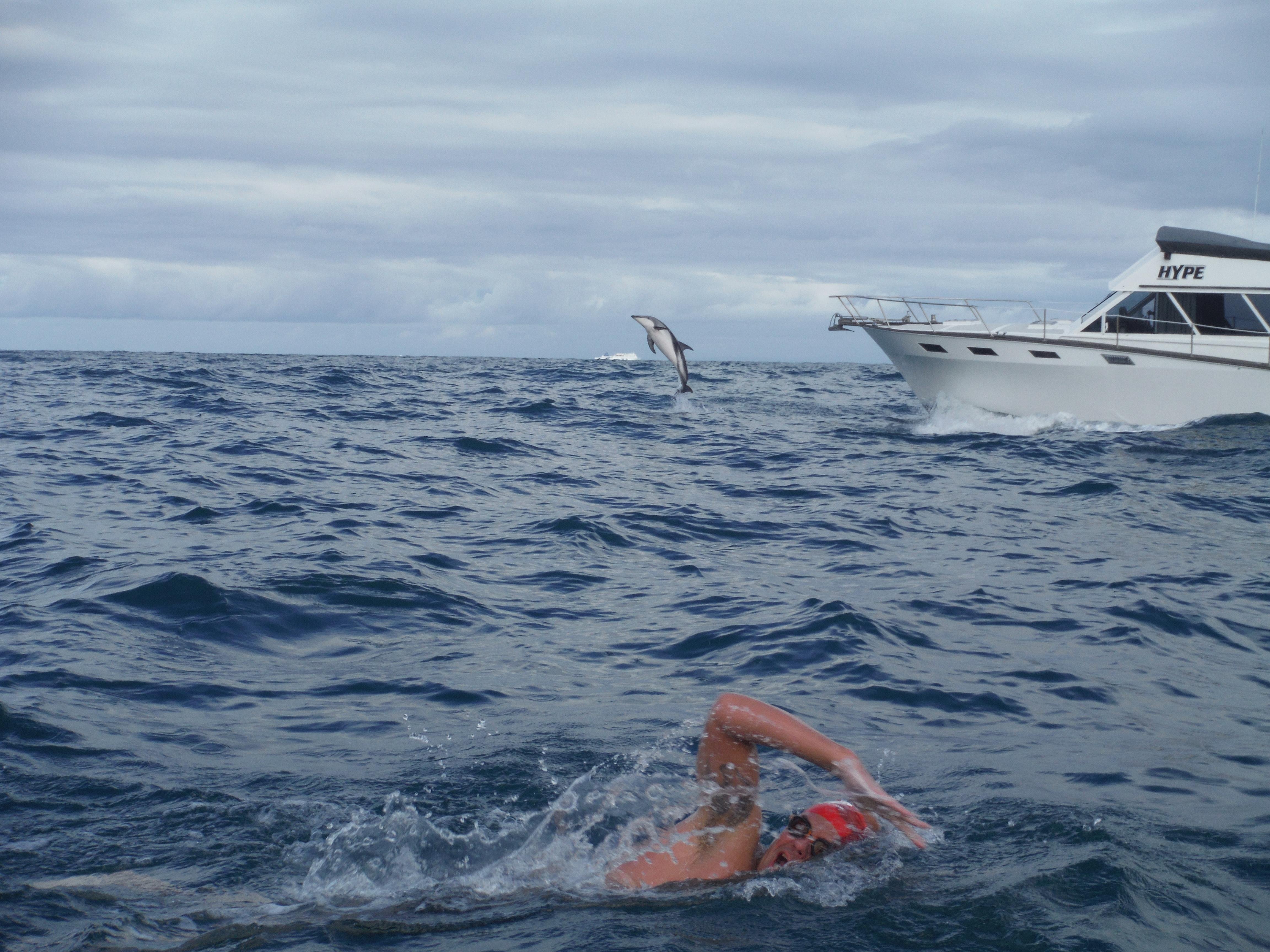 「カタリナ海峡ではまず暗闇の中を6時間泳がなければならなかった。そして後半の6時間は肩の痛みがぶり返して片手で泳がなければならなかった。二頭筋腱が断裂してしまったんだ」