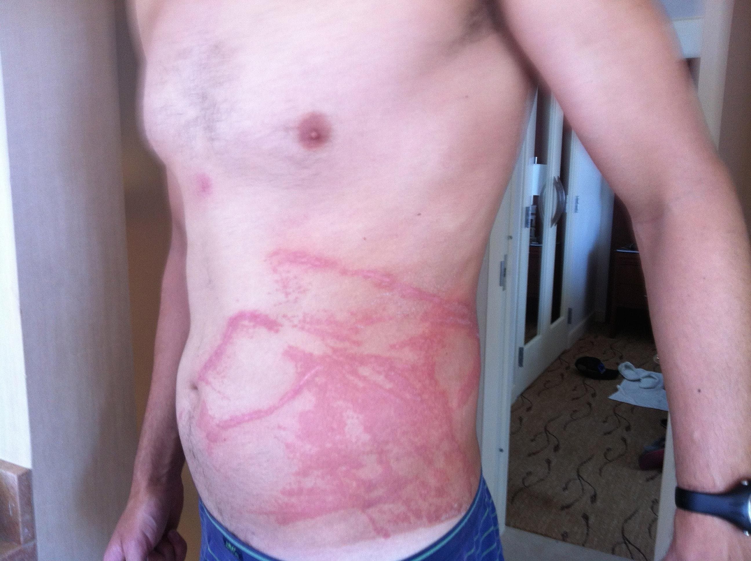 カツオノエボシを侮ってはいけない。このクラゲはコブラと同等の毒を有しており、刺された場合は致命傷になる。ハワイ・カイウイ海峡で遠泳に挑戦していたウォーカーは13時間を経過した時点でこのクラゲに襲われた。