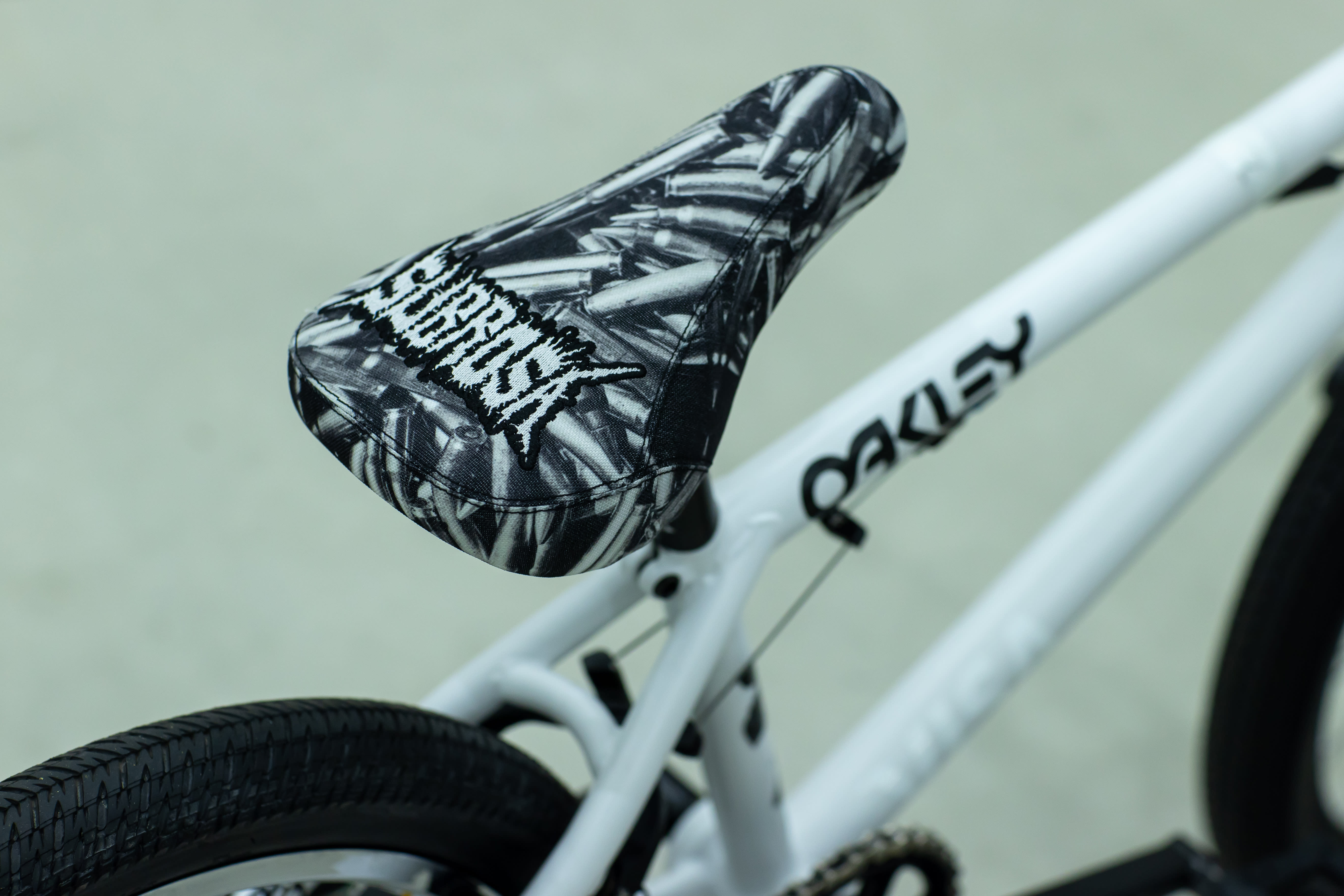 サドルは、輪夢と同じSUBROSAに所属するチームメイトのシグネチャーモデルをセレクト。あれだけの高さで空中トリックに挑むライダーにとって、シートはやはりクッション製が一番になってくると思いきや意外な回答が戻ってきた。
