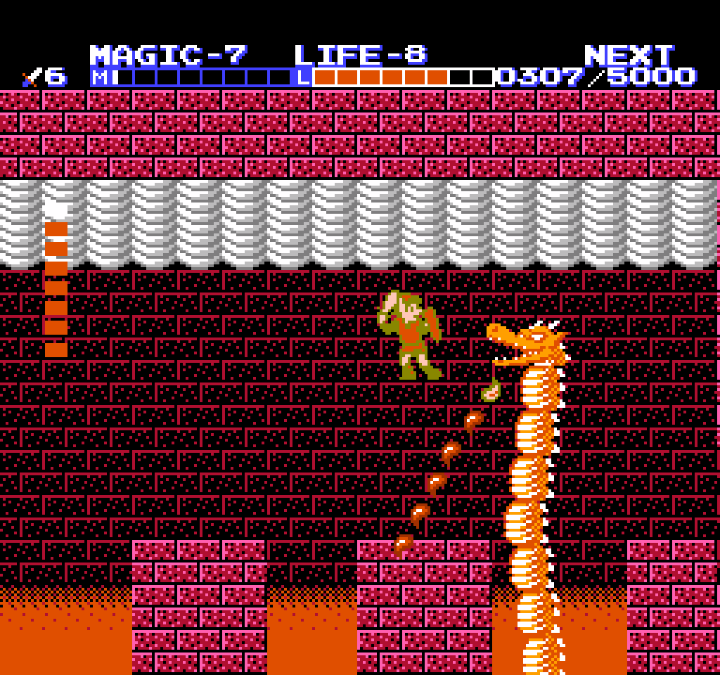 オリジナルの『ゼルダの伝説』についてはこれまで多くのことが書かれてきた。これは、主人公のリンクを初めて世界に解き放ったトップダウン型アドベンチャーゲームの名作で、内蔵バッテリーでカートリッジにデータ保存ができる機能をゲーム史上初めて導入したゲームでもあった。しかしシリーズそのものを完全に別の切り口から作り直した『THE LEGEND OF ZELDA 2 リンクの冒険』も忘れてはいけない。『ゼルダの伝説』シリーズ唯一の横スクロールで、RPGスタイルのレベルアップシステムが導入された唯一の作品でもある。シリーズのファンには是非チェックしてもらいたい、好奇心をくすぐる作品だ。