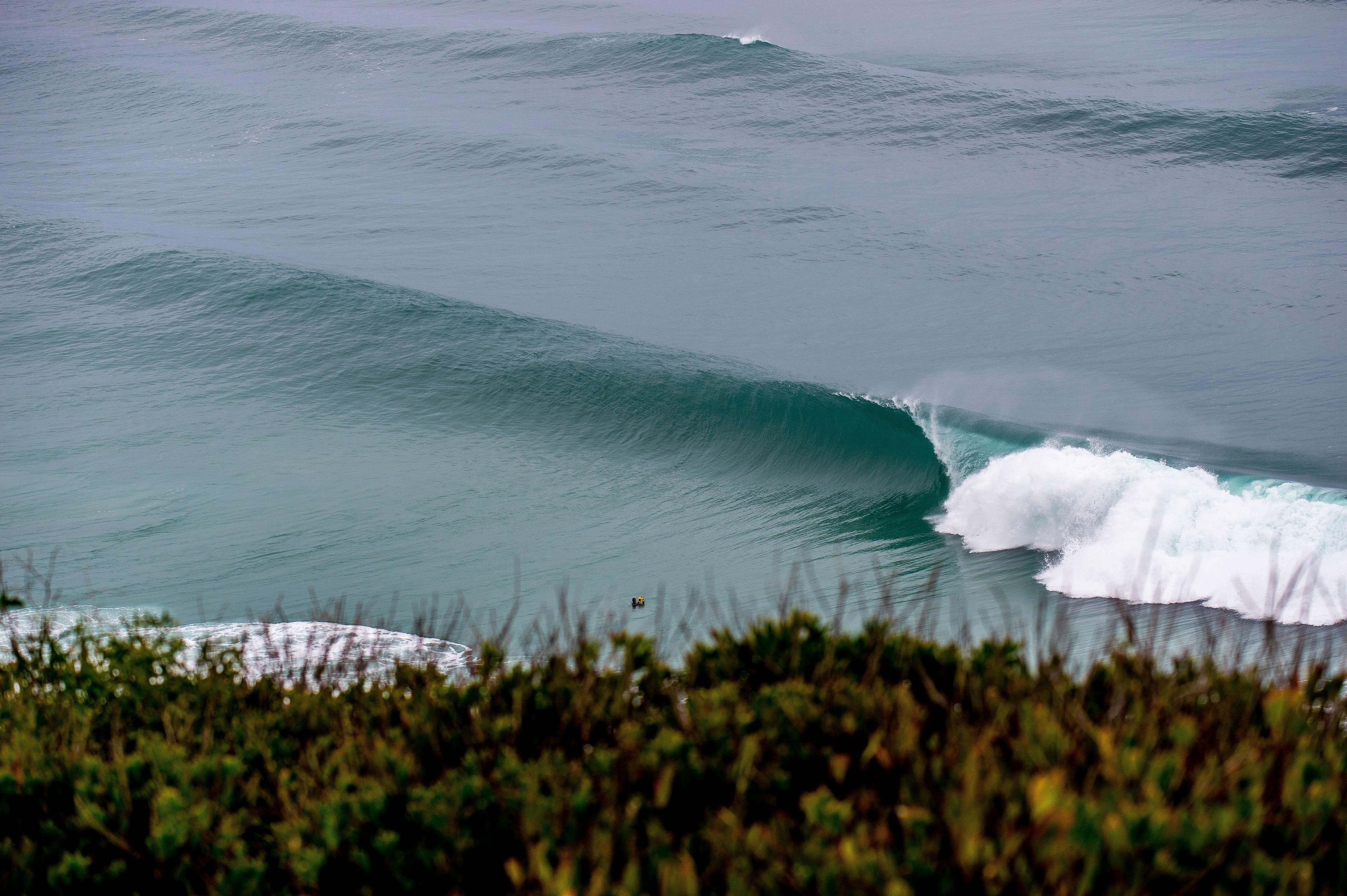 北上を続けると、ヨーロッパ最恐のサーフポイント、 ナザレ が待つ。 プライア・ド・ノルテ (Praia do Norte)のXXLビーチブレイクは世界的に有名で、ここではWSLビッグウェーブツアーの Big Wave Tow Challenge が毎年開催されている。