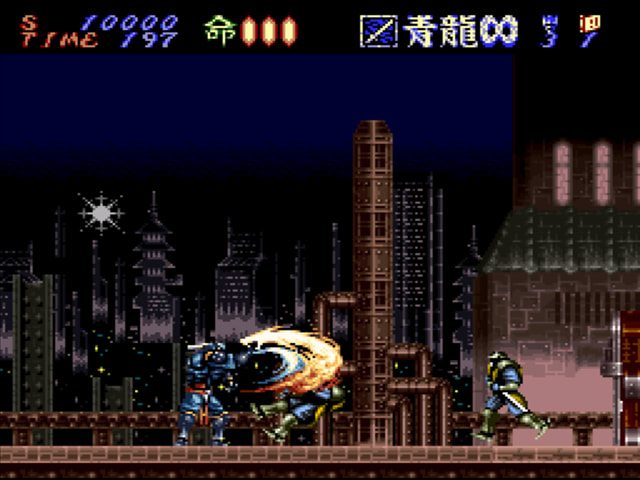 内容はカプコンのクラシック『ストライダー飛竜』にやや似ている。多様な武器とアクションが用意されているが、この特徴はプレイヤーにとって非常に重要だ。なぜなら、『鋼 HAGANE』はゲームバランスが非常に良いにもかかわらず、スーパーファミコン時代屈指の高難度を誇っているからだ。