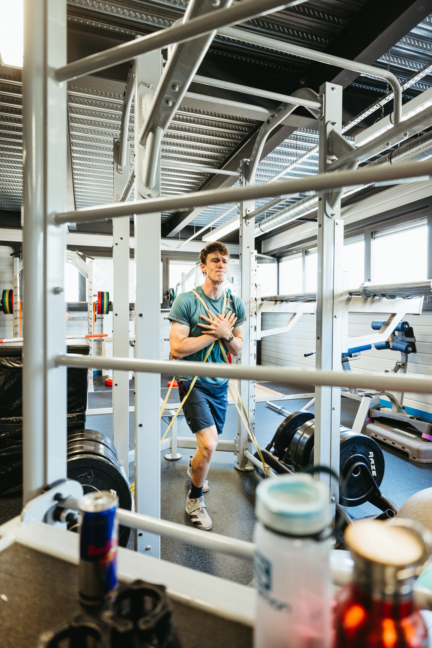 ノエルは次のように説明する。「シーズンインする前、つまり夏の間にフィジカルの強化はほとんど終えていますので、シーズン中はスキーに特化したトレーニングにフォーカスします。これらのトレーニングは長くて40分で、用具もほとんど使用しません。なぜなら、ツアー中はホテルで用具が揃わないときがあるからです」