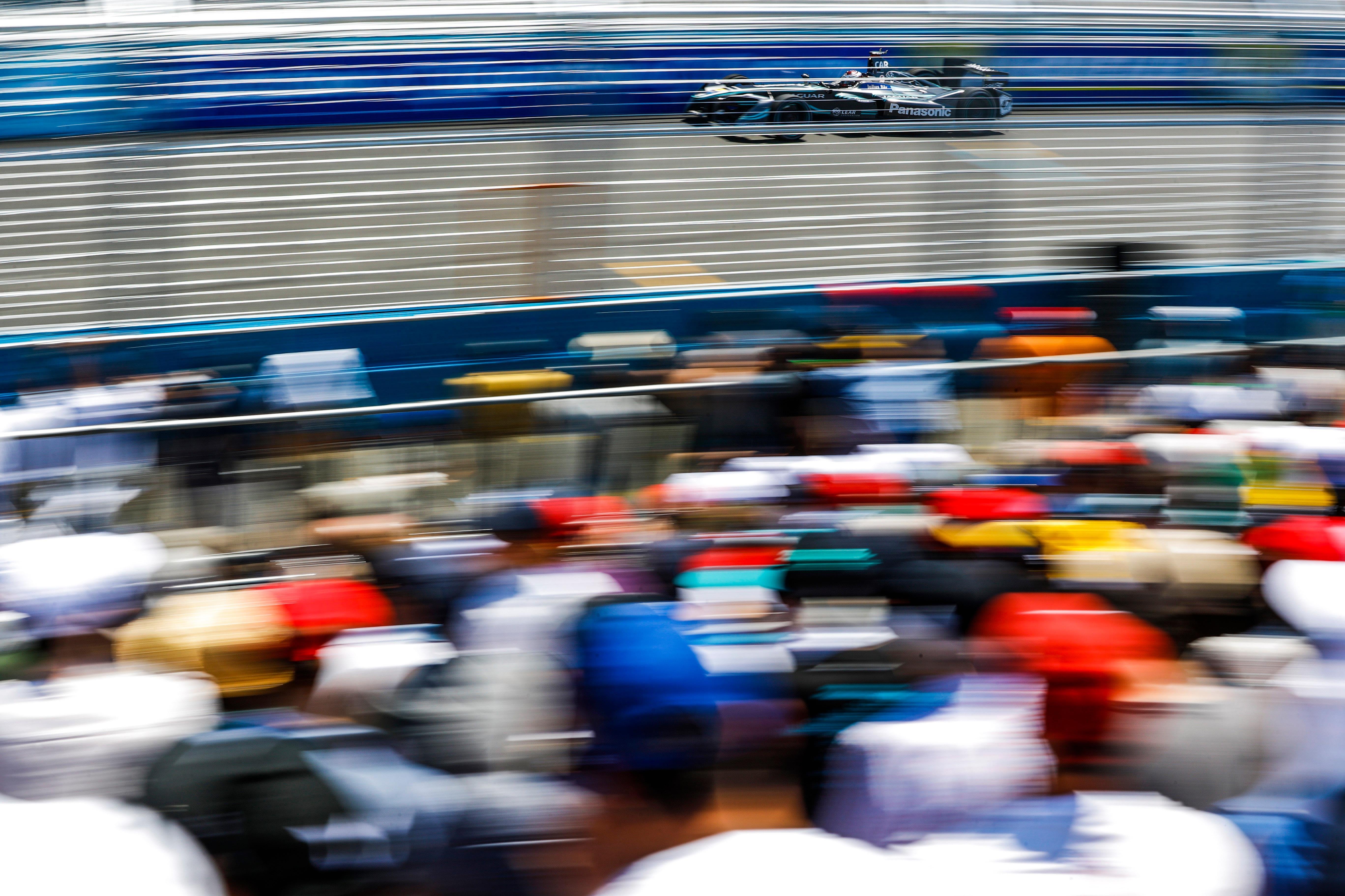 F1のレースウィークエンドは金曜から日曜まで続くが、フォーミュラEのレースウィークエンドは1日だけ(土曜日)で、プラクティスセッション2回・予選・E-Prix(決勝)がすべて同日に開催される。