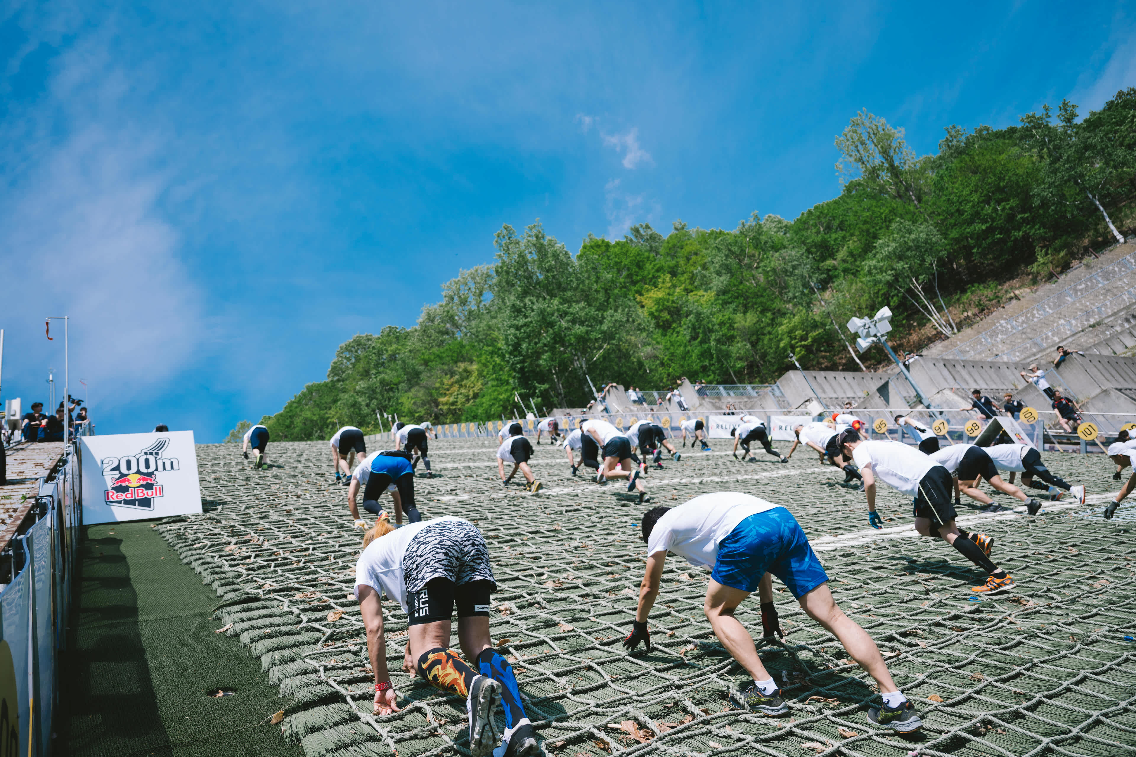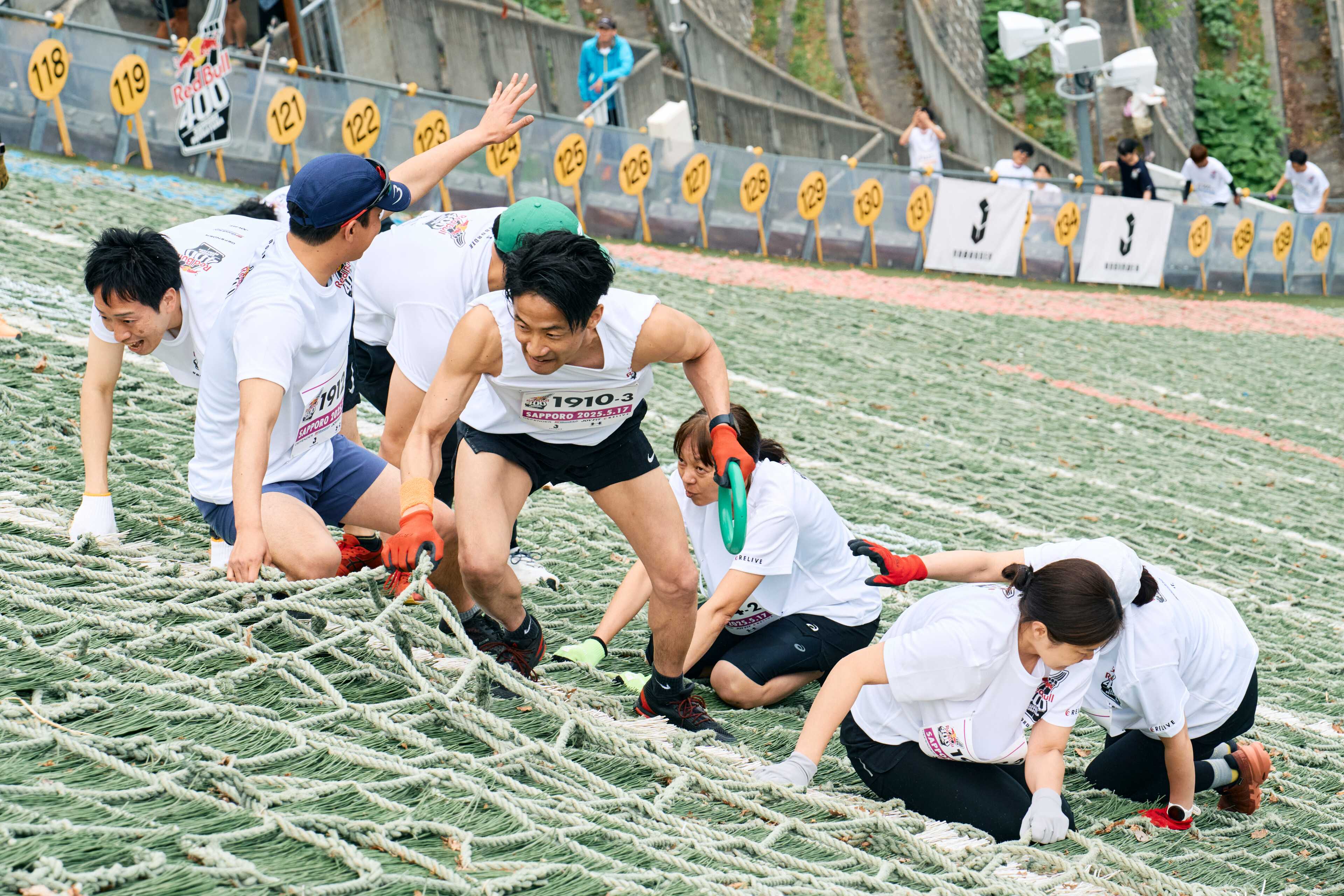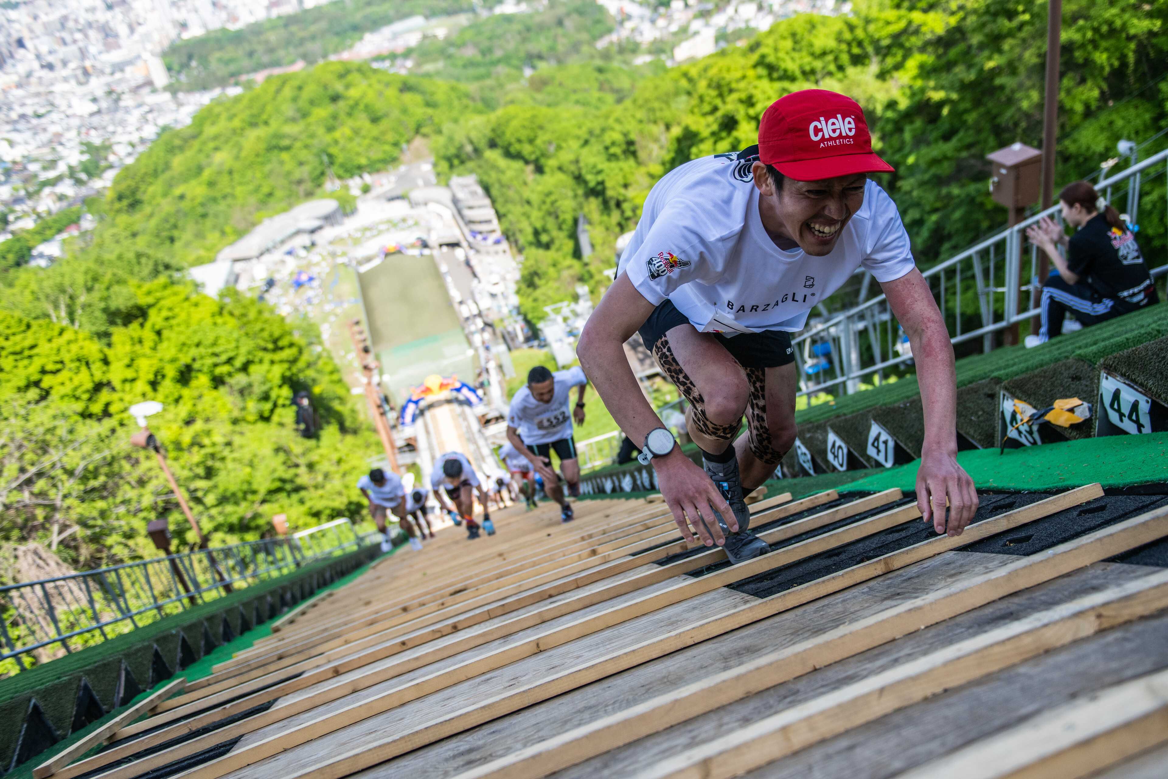 スキージャンプ(ラージヒル)に使用される特大ジャンプ台を下から上へと登っていく、持久力と精神力が試される新感覚逆走レース。