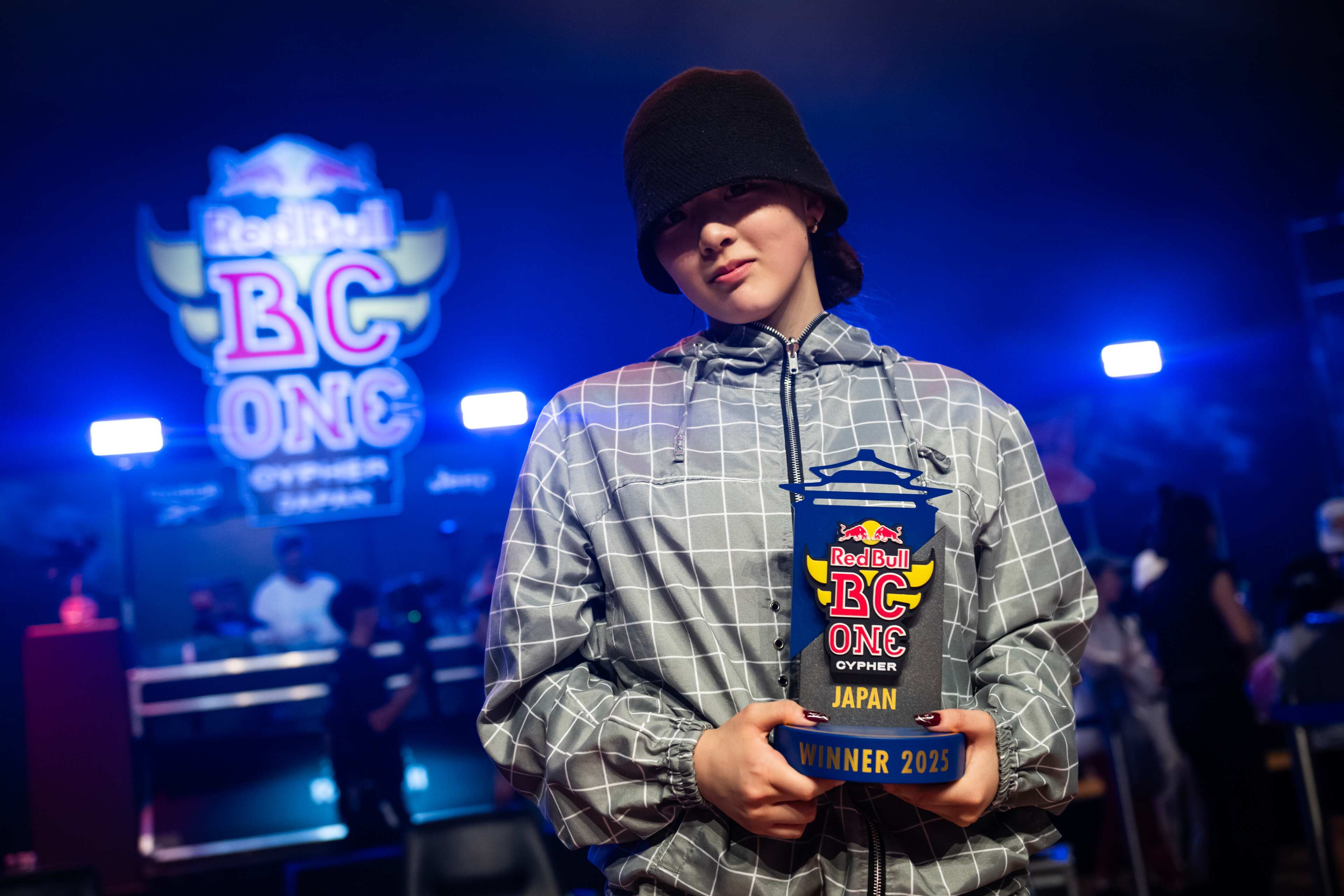 コメント: 「さまざまな方々のおかげで、今日最後までベストコンディションで挑むことができました。本当に嬉しく、感謝の気持ちでいっぱいです。『Red Bull BC One Last Chance Cypher』では「今年の日本は弱いな」と思われないように、日本の代表という気持ちを忘れずに、自分らしくしっかりと表現できるよう挑戦していきたいと思います」