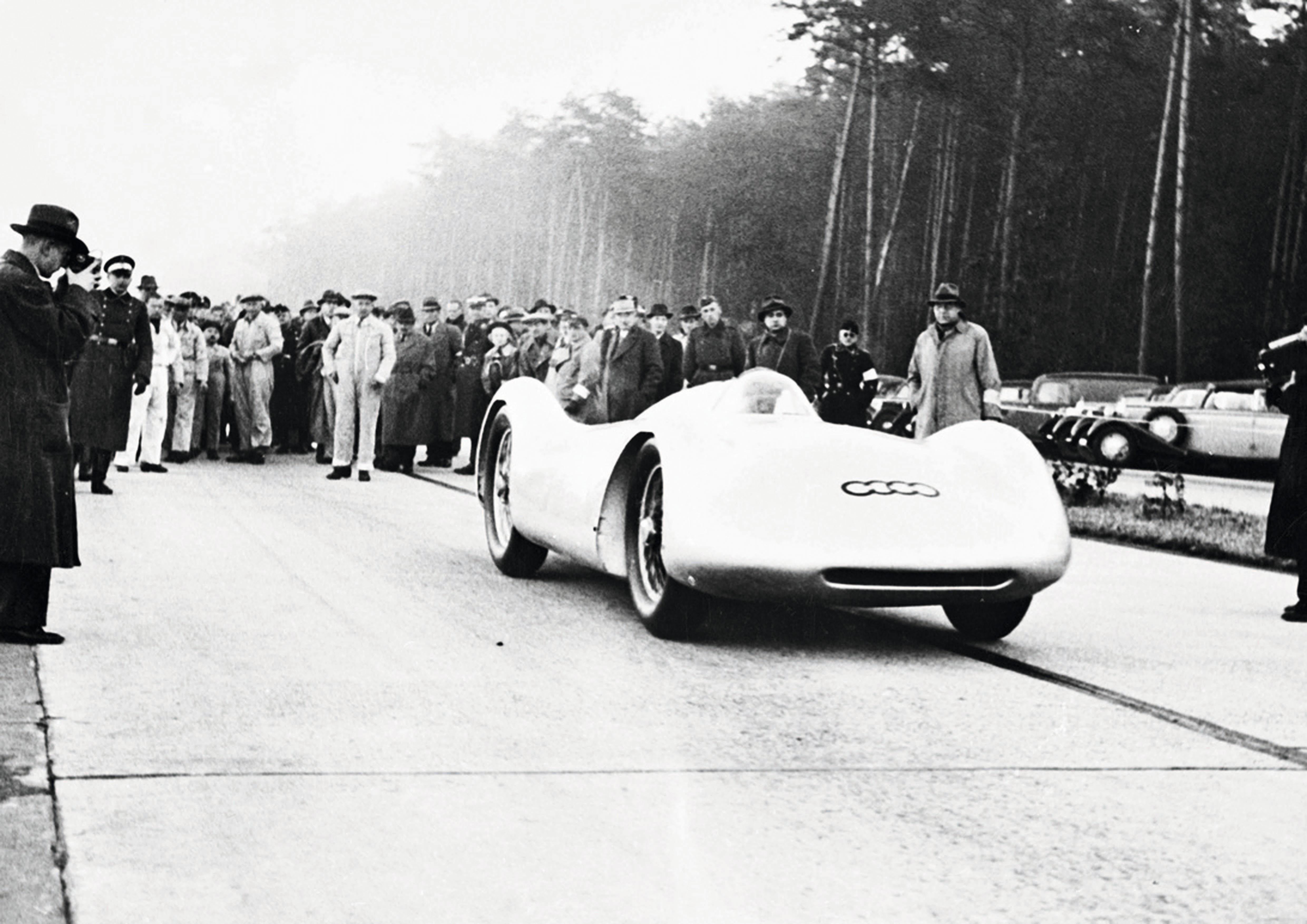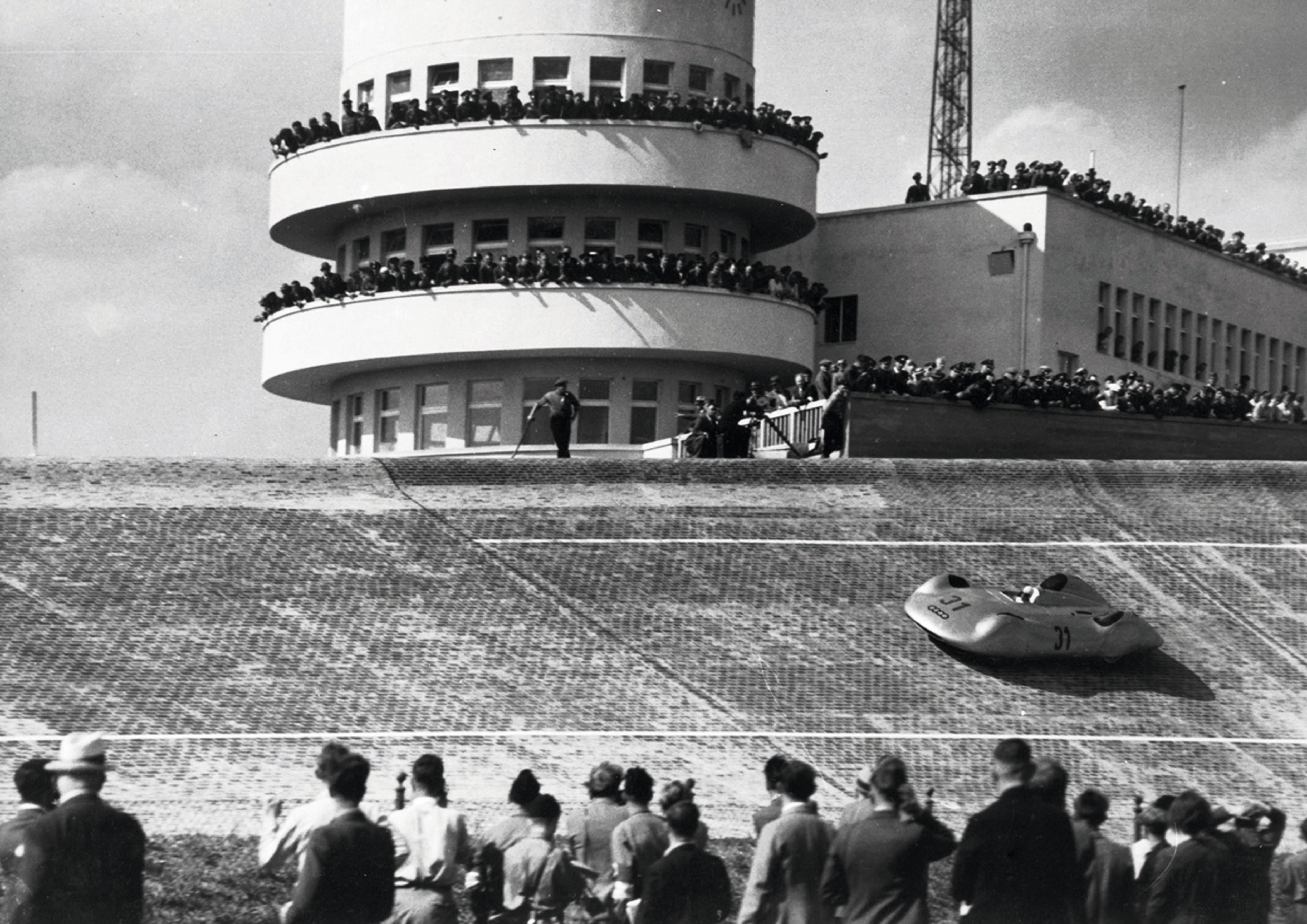 安全性への意識が限りなく低かった戦前のGPレーシングでは、一切のガードレールを持たないバンク付きの超高速オーバルコースでの開催が日常茶飯事だった。