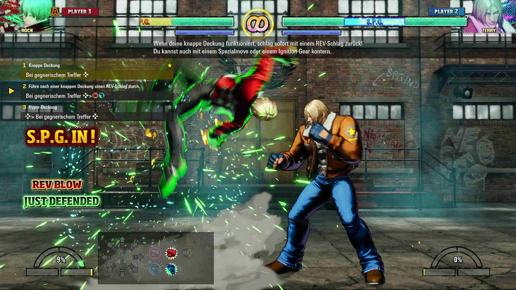 『餓狼伝説 City of the Wolves』のユニークな特徴のひとつが、攻撃やコンボだけではなく、防御(ガード)にも複数の選択肢が存在することだ。たとえば、《REVブロウ》は攻撃だけではなく防御にも使用できる。