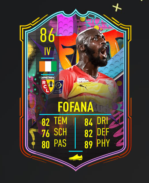 セコ・フォファナはゴールドカードでも “OP” レベルだが、“アウト オブ ポジション” バージョンはまさに守備の鬼と呼べるクオリティを誇っている。フォファナは元々センターバックの選手だが、最も適しているのはディフェンシブ・ミッドフィールダーだ。守備の選手ながらドリブル84、パス80、シュート76と攻撃力も十分なのでユニークなCDMとして活躍してくれるはずだ。