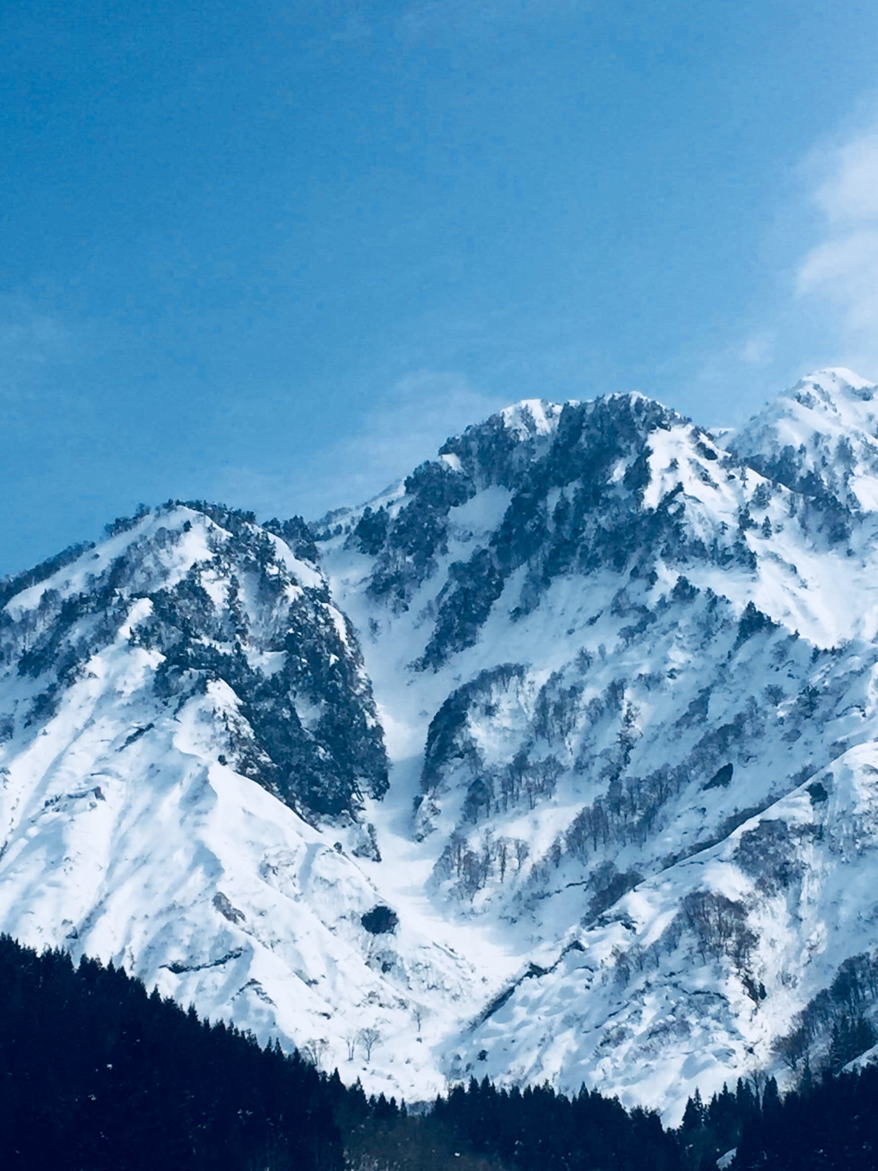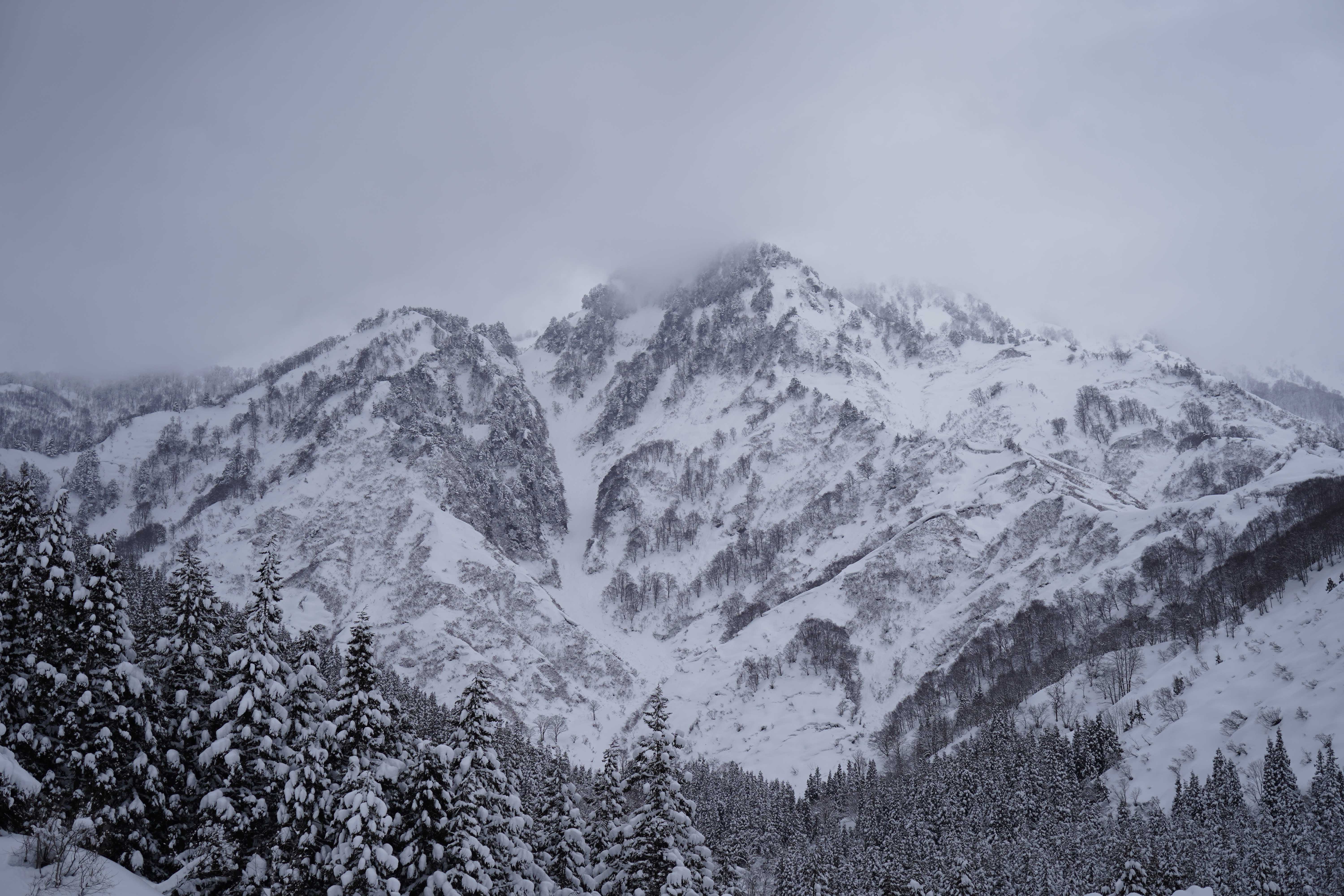 南魚沼市の象徴ともいえる山、それが八海山だ。急峻な斜面に新潟ならではの湿った雪が積もるため、斜度があっても滑ることができる面が多い。新潟は雪が重いとよくいわれるが、“雪が重く湿っているがゆえに雪の着きが良いこと”を、僕は逆手にとってスノーボードを楽しんでいる。
