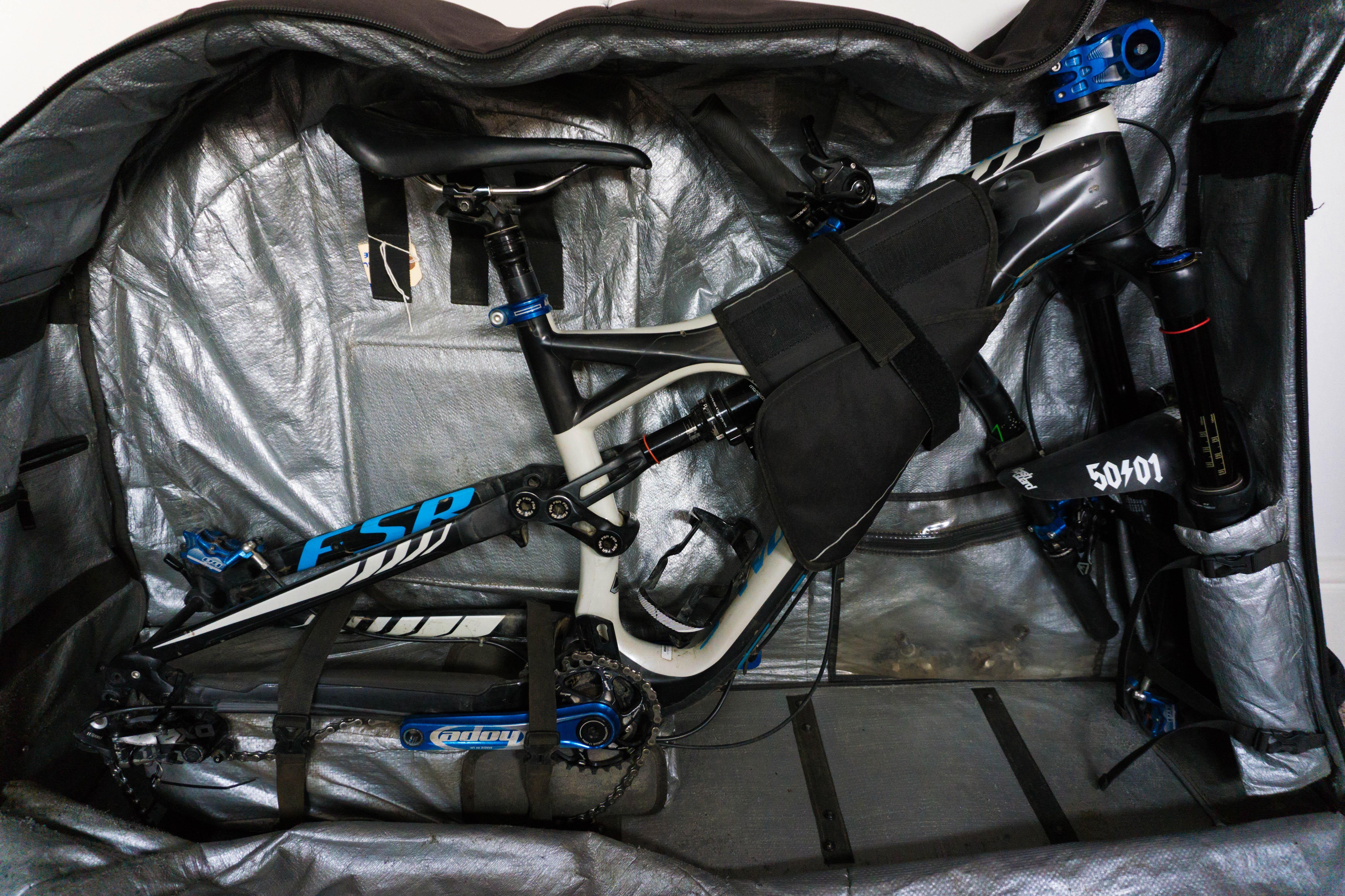 保護材やストラップなどがあらかじめ用意されていないので、輪行ボックスを使ったパッキングはやや時間がかかりがちだ。覚えておいてほしい有用なヒントは、全てのパーツをしっかりと固定し、運搬中にボックスの中でパーツが動かないようにするということだ。