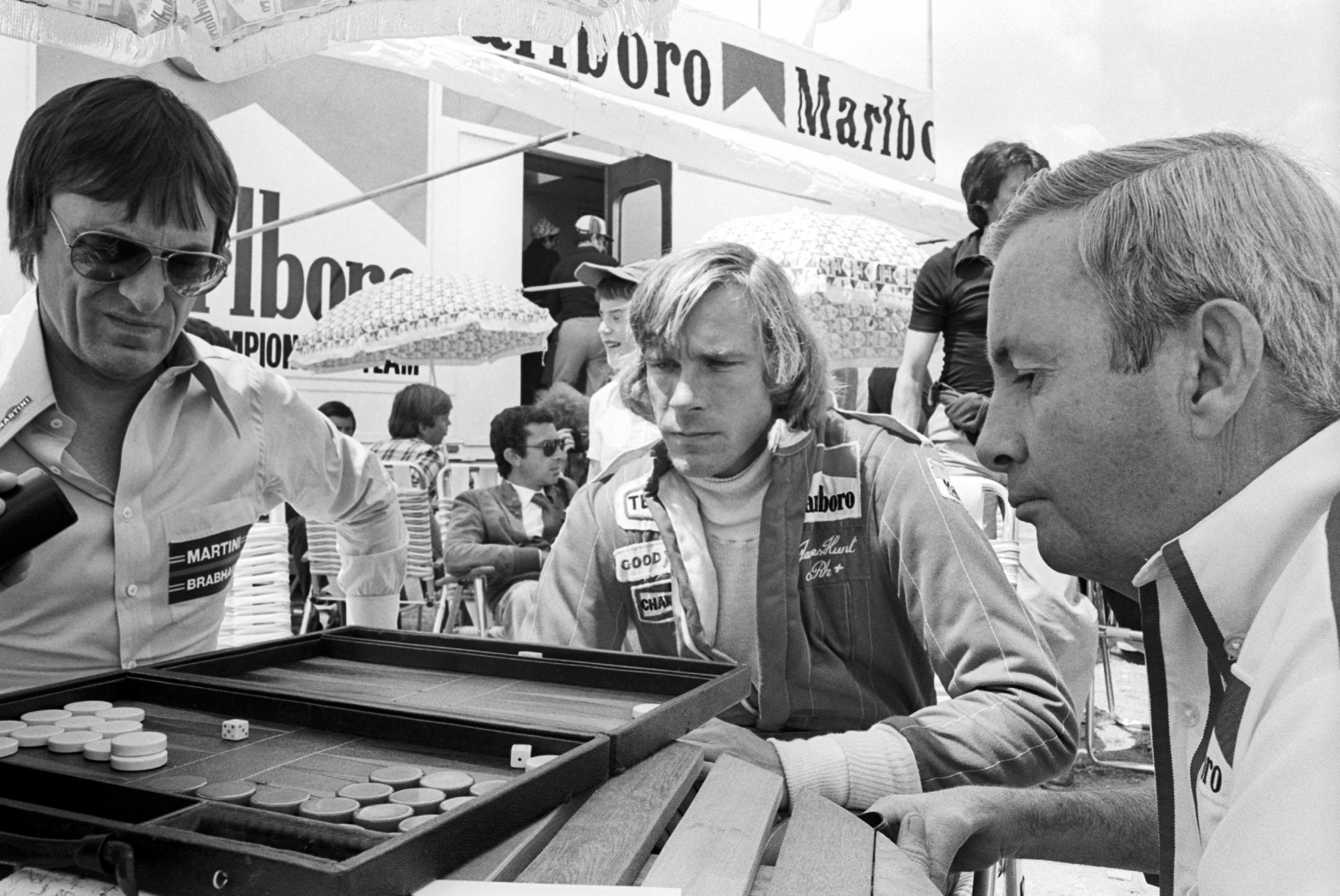 バーニー・エクレストンやテディ・メイヤーとバックギャモンを愉しむハント