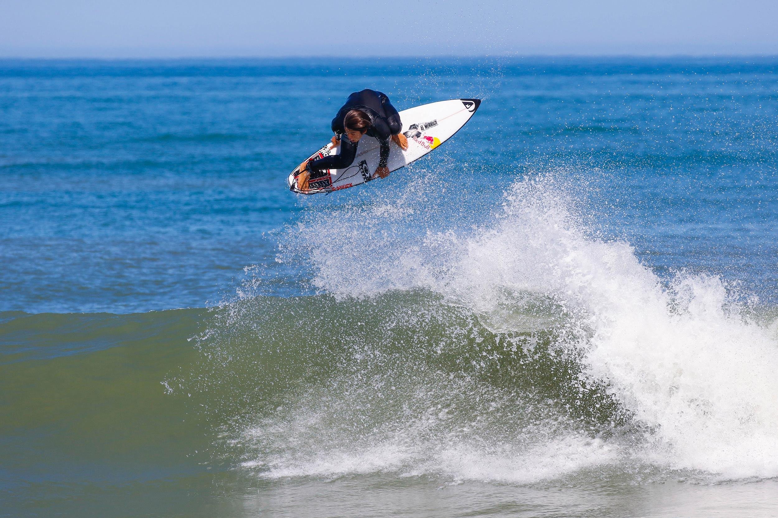 ハンティントンビーチでサーフィンを楽しむ父の影響から3歳の時にサーフィンをスタート。3年後の6歳の時には、初めて出場したローカルコンテストで優勝を果たし、サーファーとしての非凡な才能を見せつけた。その才能は、当時のアマチュアUSAコーチ(ジョン・ブラン氏)の目に留まり、最年少の9歳で強化選手としてUSAチーム入りを果たす。
