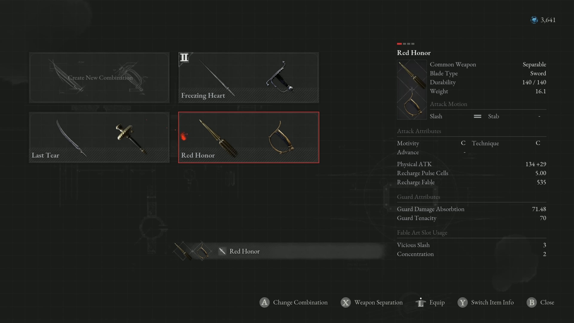 武器にはひとつアレンジが加えられている。この作品では剣もしくは両手持ち武器が “刀身” と “柄(持ち手)” に分かれており、これらを自由に組み合わせればユニークな効果が得られるようになっている。