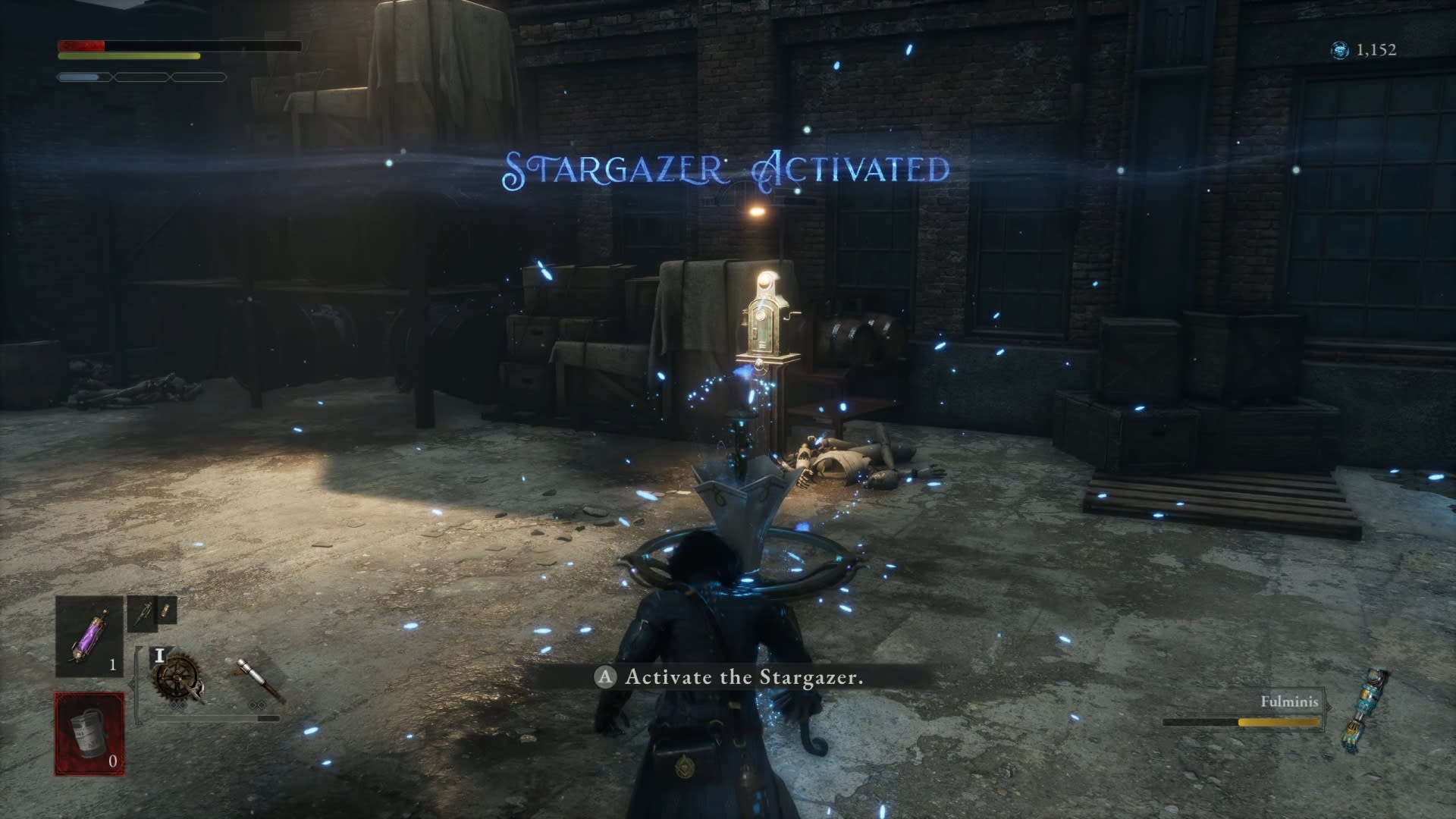 プレイヤーが倒されれば、失われたソウルを回収しなければならない。ソウルは “篝火” …ではなく “Stargazer / スターゲイザー” に集められ、ここで主人公のレベルアップや武器のアップグレードが行える。