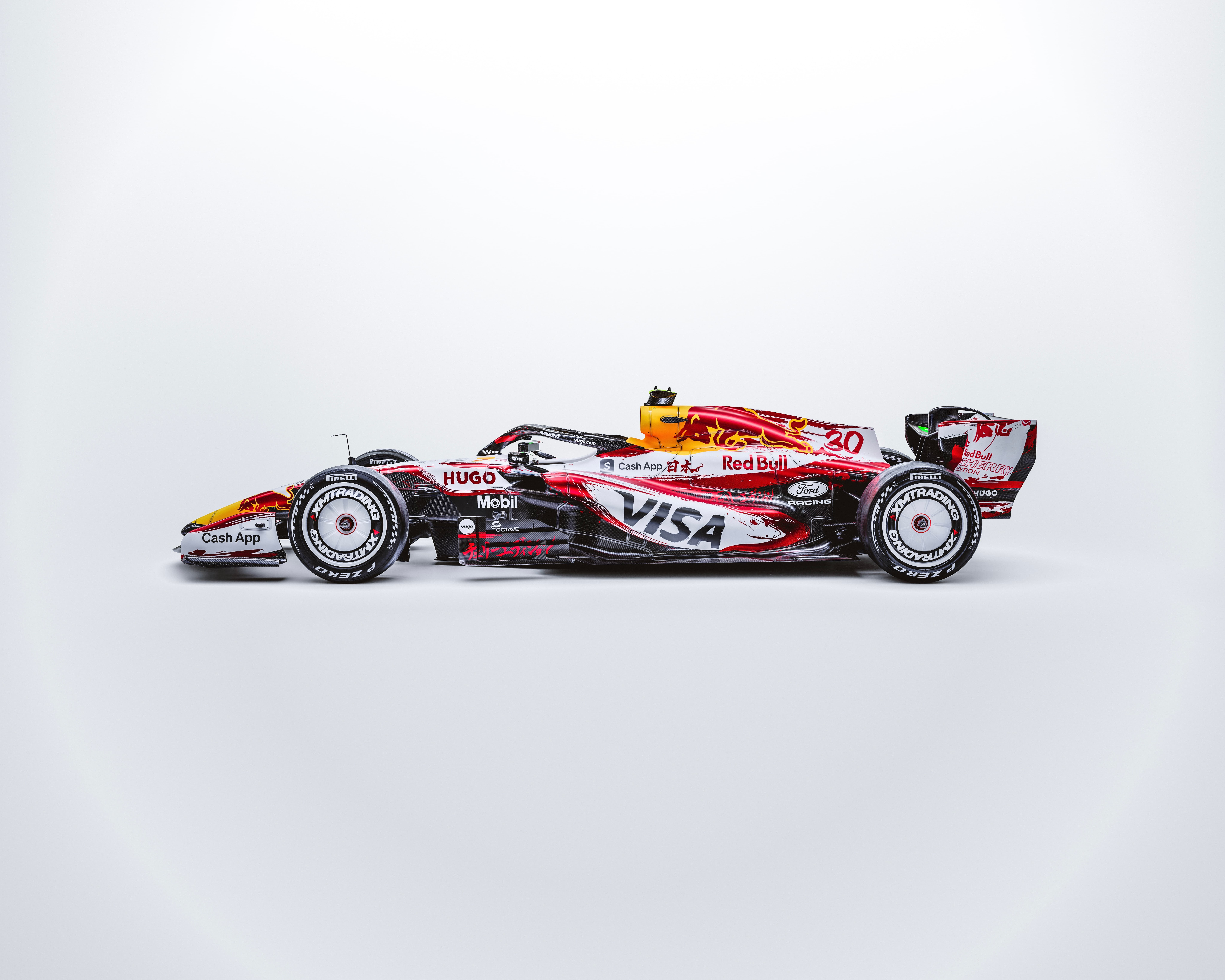 「レッドブル・エナジードリンク チェリーエディション」の世界観を反映した特別仕様となっており、赤と白のカラーが特徴のデザイン。更に日本GP限定のデザインとなるべく書道家・現代美術家の青柳美扇さんとコラボ。