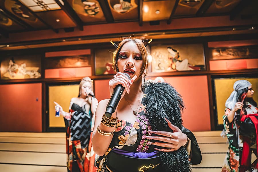 まずオファー自体がうれしかったし、音楽やっててよかったなって思いましたね。そこから曲のテーマのなかに花魁っていうのがあったので、自分のなかの“和”だったり“日本”ってなんだろうって考えて。わたしは沖縄出身なんですけど、おばあちゃんが103歳なんです。沖縄戦も経験していて、いまだにその話をしてくれて。だからそういった部分も自分のルーツとして“look back Don’t forget 沖縄戦の出来事”ってラインに込めました。
