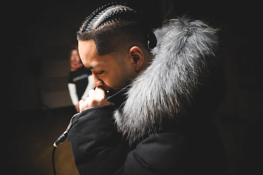 14歳ごろくらいっすかね。自分は福島出身なんですけど、東日本大震災のあとにテレビで復興に関するドキュメンタリーがあって、そこにラッパーが出ててカッコいいなって思ったのがヒップホップに興味を持ったきっかけだったかもしれない。そこからモノマネみたいな感じでラップしてみたりして、その後、高校2年くらいのときにはじめて地元のクルーのみんなと制作をはじめたんかな。最初はただカッコいい言葉を並べるくらいのもんで、いま聴いたら恥ずかしい感じだったと思います。そこから仙台の先輩とかと会っていろいろ影響受けていったって感じですね。