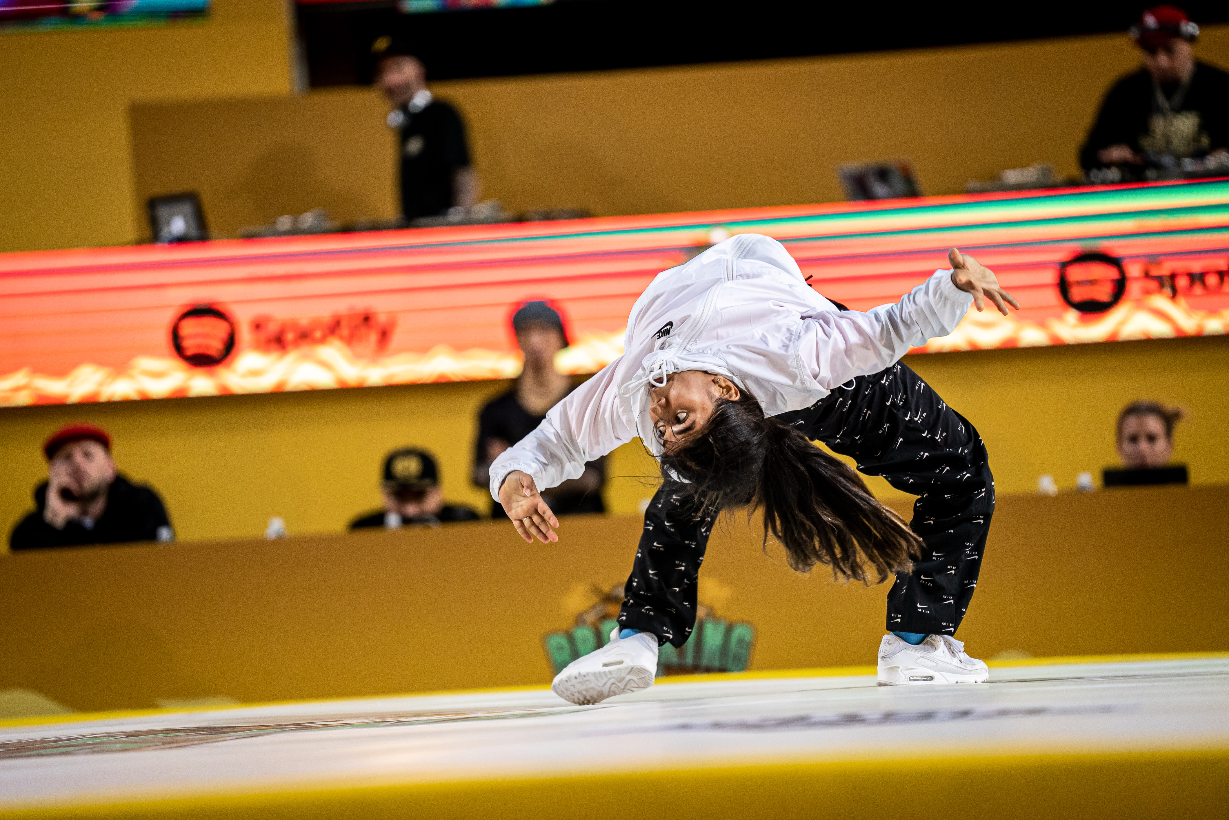 - 経歴:オランダ出身のIndiaはHeavy HittersとHustlekidzに所属している。2014年からブレイキンを始めた彼女は、2022年のわずか半年間でオランダチャンピオン、ヨーロッパチャンピオン、ワールドチャンピオンに次々と輝いて世界を驚かせた。Indiaはまだ17歳だが、フロウとダイナミクスを重視したオールラウンダーとして世界のオーディエンスを魅了している。