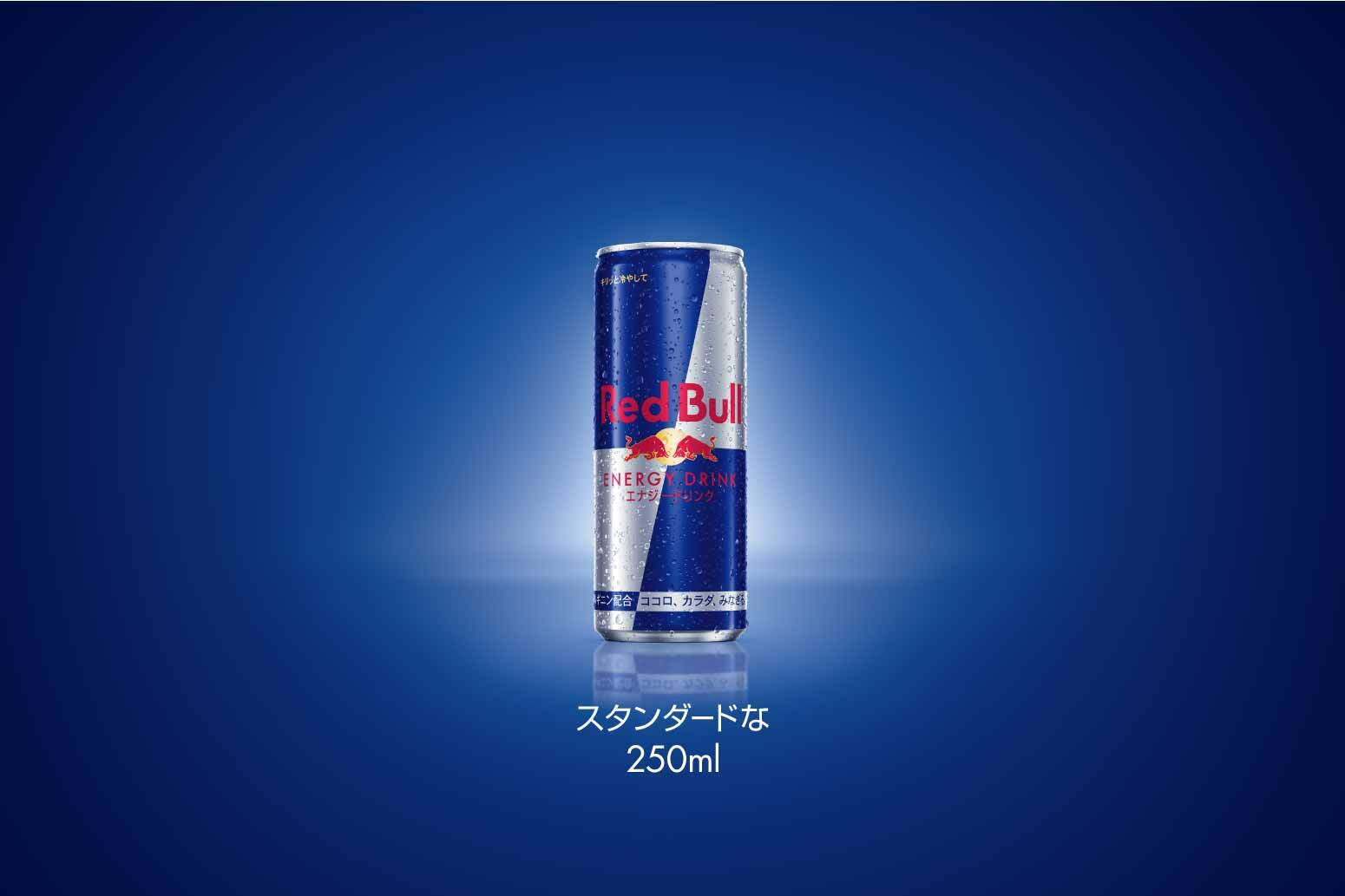 レッドブルのスタンダードな250ml。スポーツを楽しみたい、今日も仕事をがんばりたい、友達と盛り上がりたい…などなどどんなときにも、手軽に飲めて、エナジーチャージできる定番の一本!