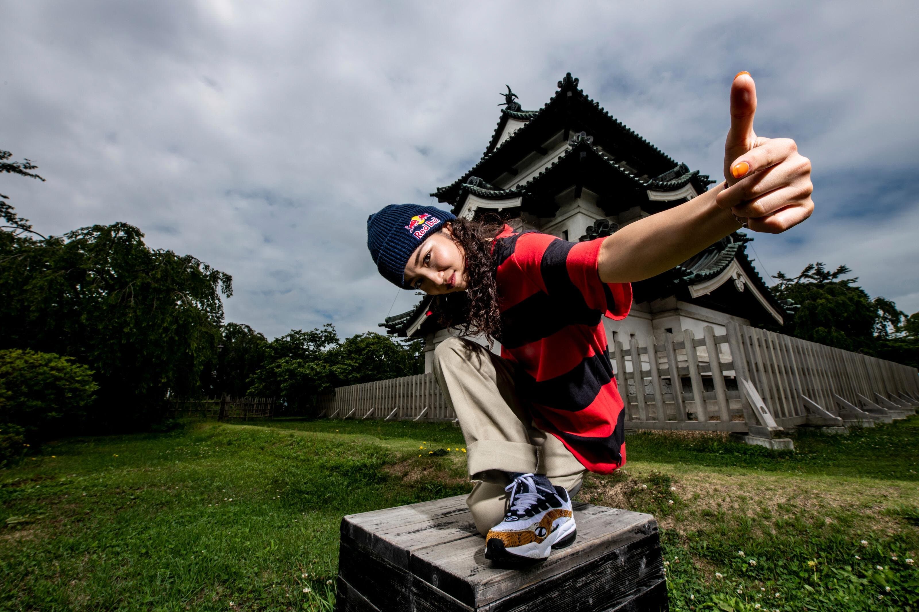 Ami poses at Hirosaki Castle during the Red Bull Dancers Tour in Japan 2019