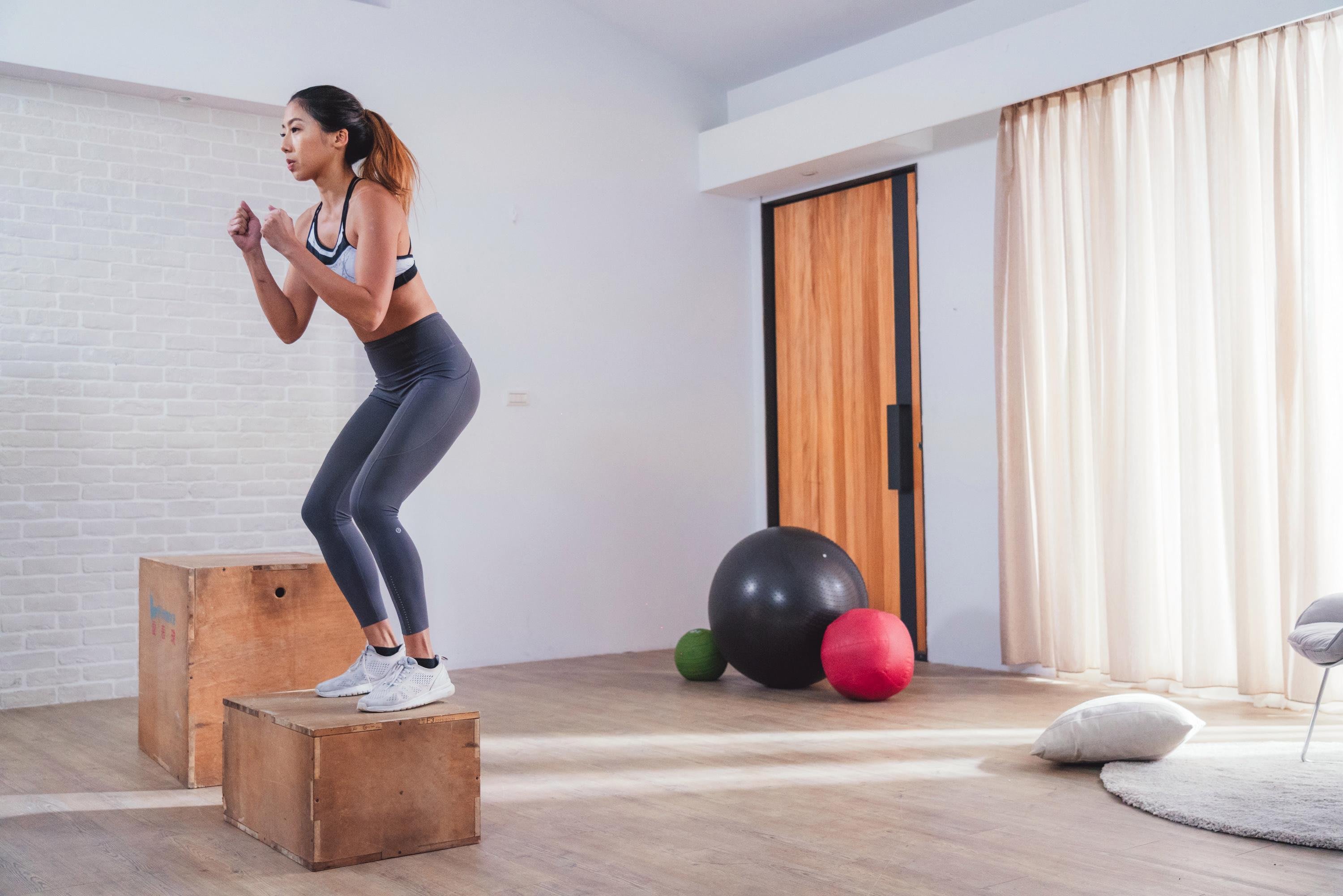 このワークアウトではしっかりとしたボックス(箱)が必要だ。ボックスがない場合は公園のベンチなどでも問題ない。まず、正しい姿勢でスクワットを行い、しゃがみ込んだら、息を吐きながらジャンプしてボックスかベンチの上に乗る。