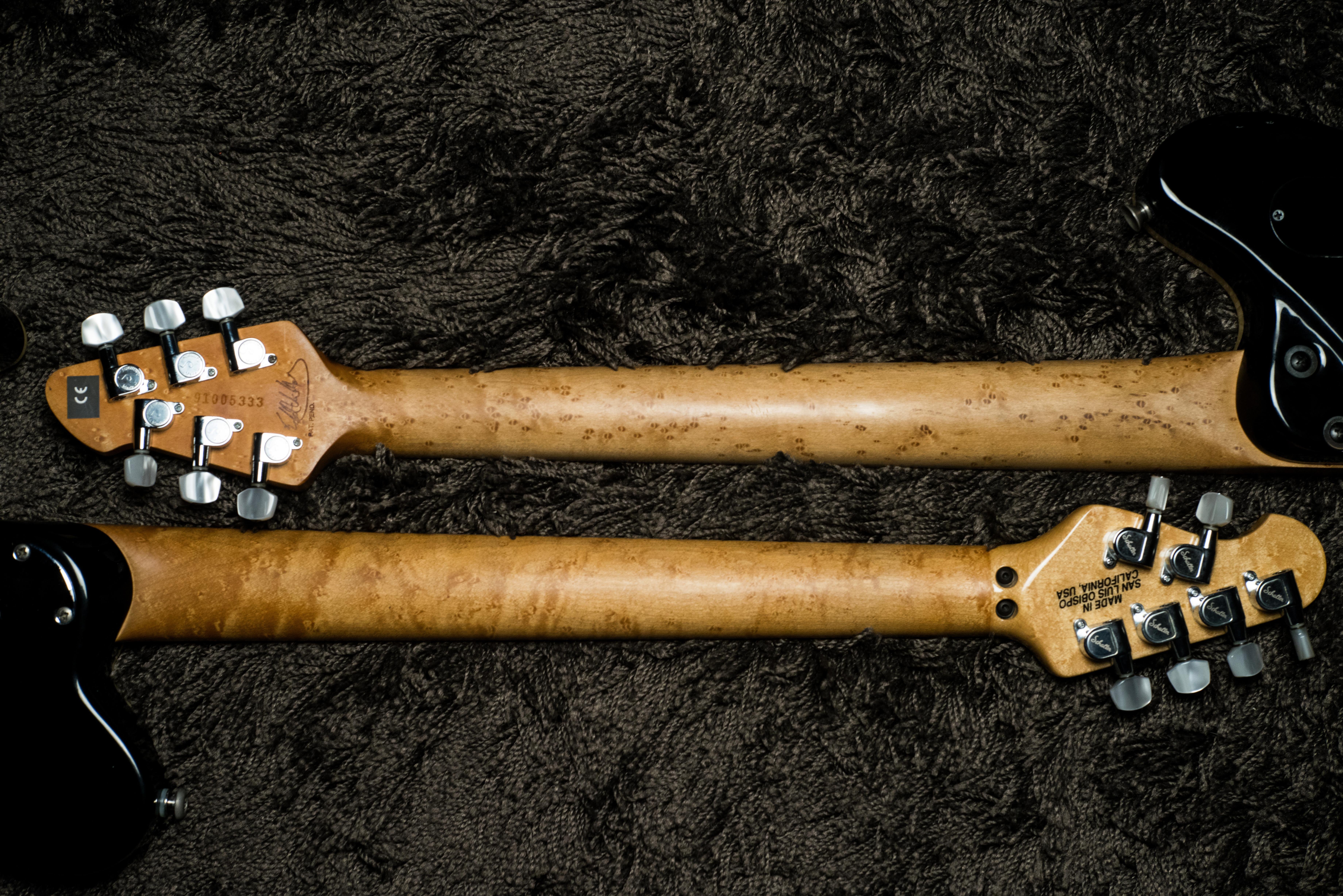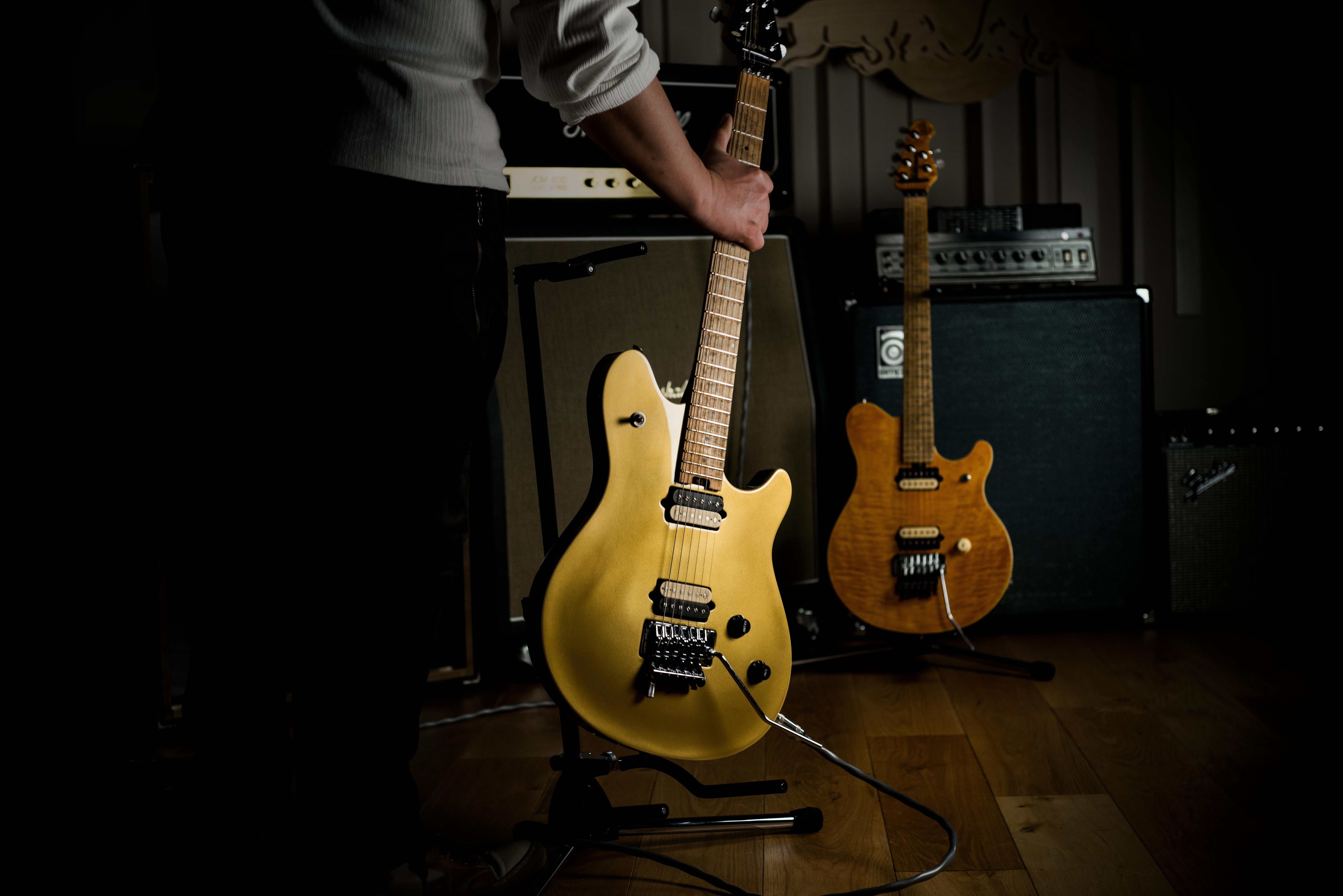 ギターヒーローなどという言葉が飛び交っていた80年代の洋楽ハードロックシーンでは、それこそ誰々モデルと冠の付いたシグネイチャーモデルが雨後の筍のように生み出されていた。なかには既存モデルのカラーリングを変えただけの商売っ気しか感じないようなものがあったし、そもそもシグネイチャーモデルとはそのギタリストのファンが購入するコレクターズアイテムとして、実際の性能面にはそれほど気を配っていなかったものも多かったように思う。もちろん全てがそうだったと言うつもりはないが、例えばボリュームポットのカーブ特性にまで拘った、そのアーティスト本人が使用しているものと完璧に寸分違わぬ“同じ”ものが市販モデルとしてその辺の楽器屋で手に入れられて、ギターとしても質も非常に高く、むしろ積極的に一軍として使いたい。現役アーティストのシグネイチャーモデルとして、そう感じさせてくれる存在感を発揮したのはMUSIC MAN EVHが最初であったように思う。