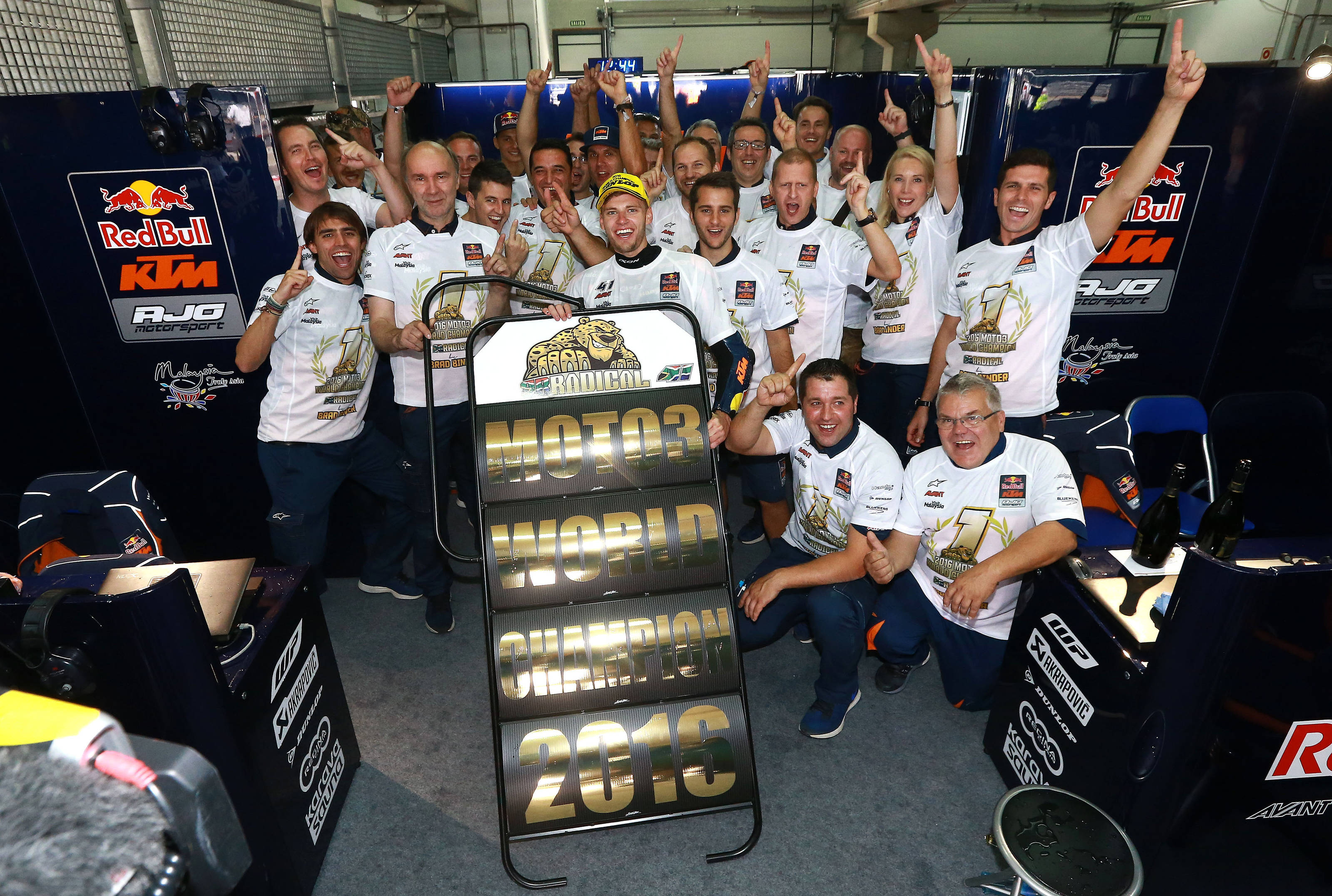 そして、2016シーズンのスペインGPでグリッド後方から素晴らしいライディングでMoto3キャリア初優勝を飾ったブラッドは、そのままさらに6勝を積み上げて同シーズンのMoto3チャンピオンに輝いた。