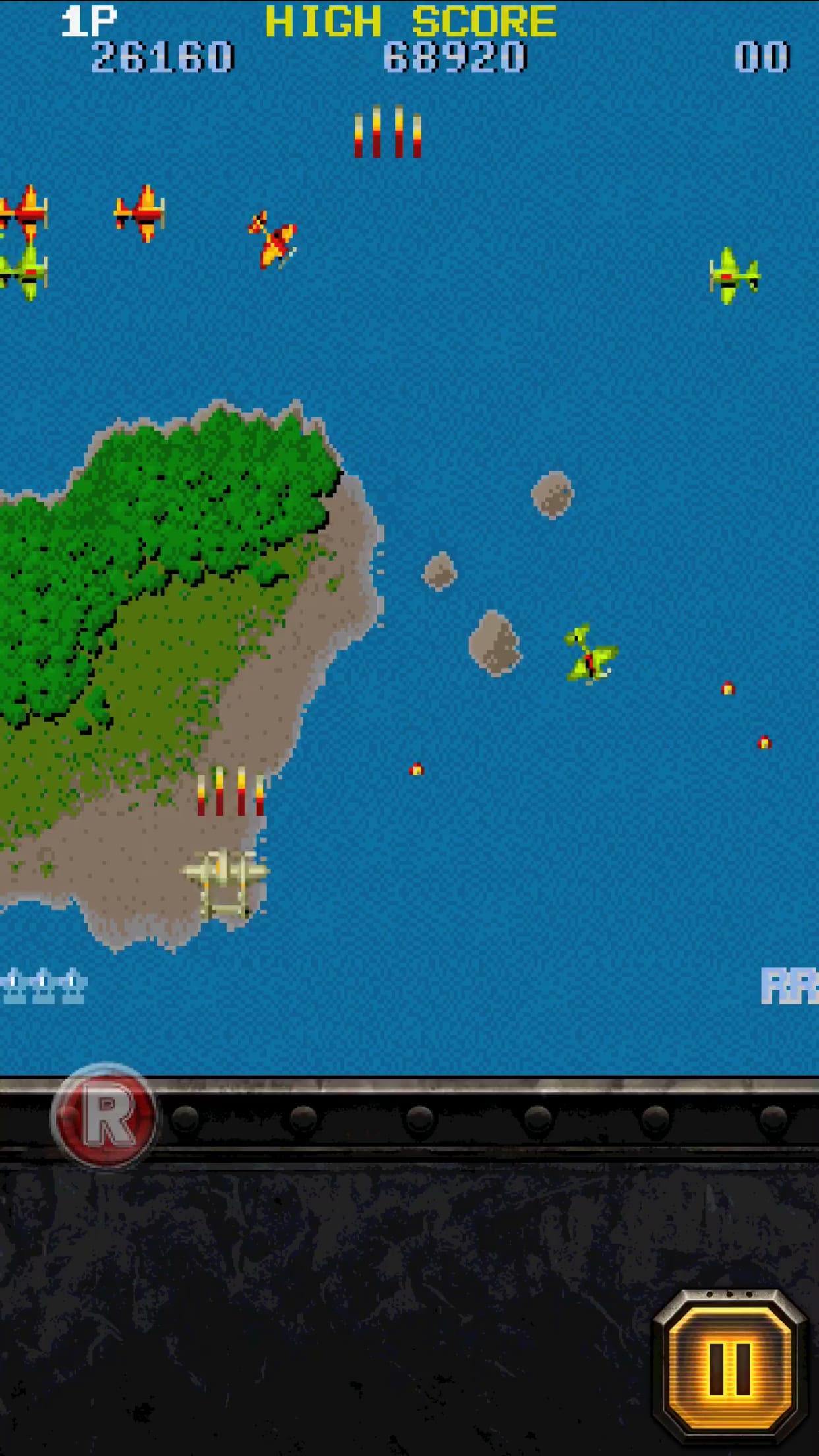 縦スクロールシューティングで1984年に登場。ショットのパワーアップ、自機の宙返りによる緊急回避(回数制限あり)、そして何発も当てないと撃破できない中ボス的な大型機の存在など、現在のシューティングゲームにおける定番要素が盛り込まれている。