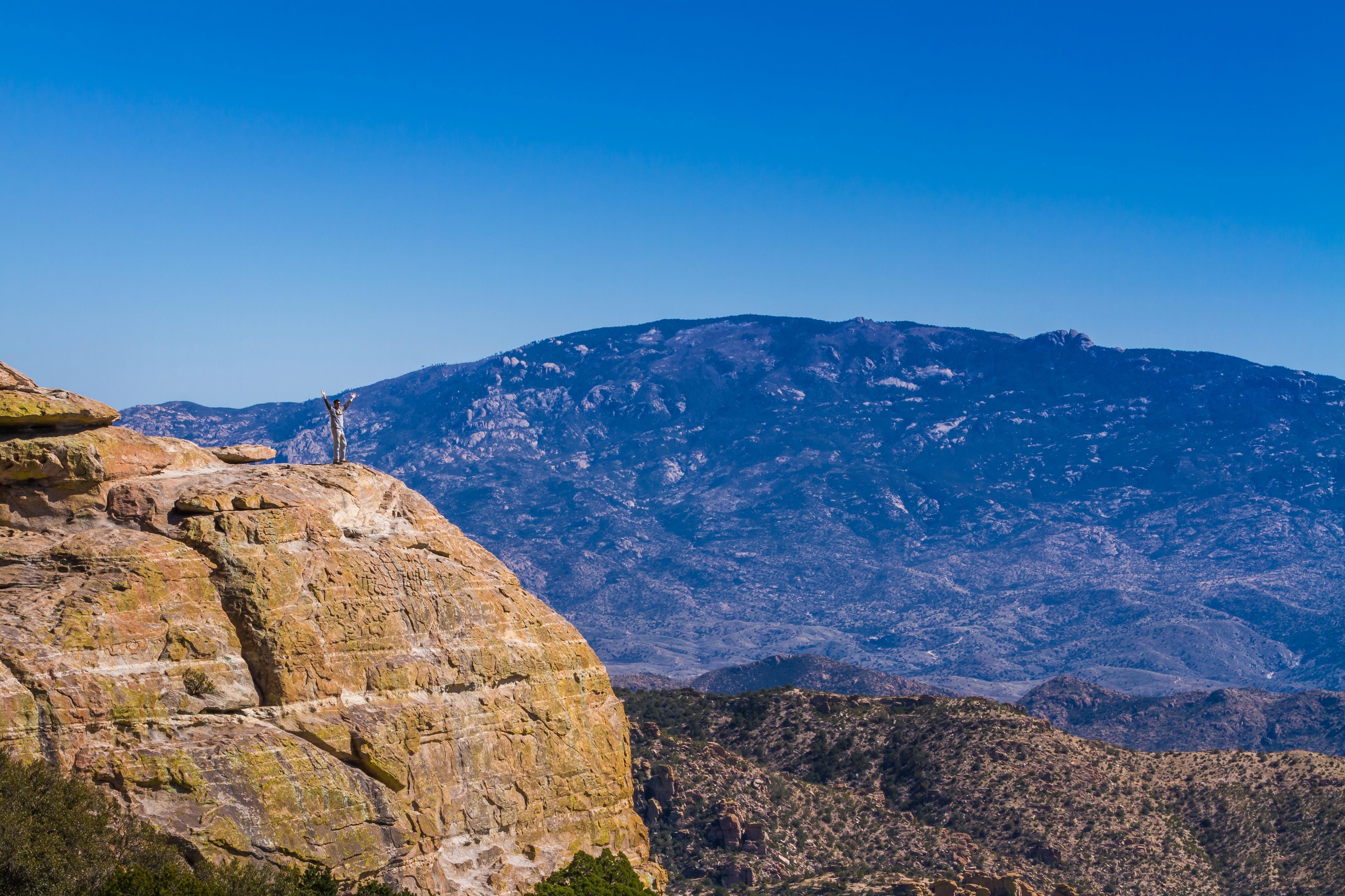 アリゾナ州のカタリナ・ハイウェイはサンタカタリナ山脈を縦貫しており、標高差1,615mを登りながら、北米に7つある生物分布帯の5つを通過する。たった27マイル(約43km)でサボテンとガラガラヘビの “荒れ地” から山岳の森林地帯へ抜けることになるこのエリアでは、1年を通じてクライミングを楽しめる。