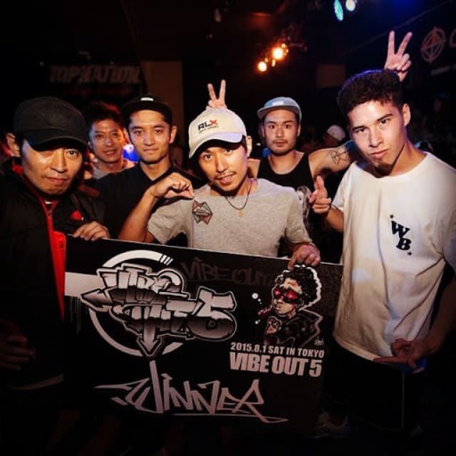 「Vibeout Vol.5で優勝後の一枚。チームバトルに5人で出場。内2人は個人として7 to Smokeにも出場。決勝は満身創痍の中、海外からのゲストを破って優勝出来たのは嬉しかった!」(Jack)