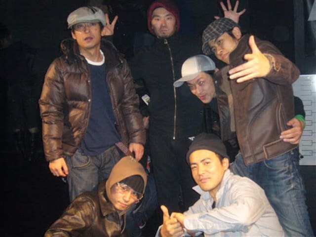 「2008年、新宿にて。この時期に定期的に開催されていたバトルイベント『杢人拳』での写真。決勝ではMZKやGamblerzのメンバーを擁する強力ユニットと対戦し、見事優勝。チームとして活動頻度が低い時期だったので、チームでの優勝はひときわうれしかった!」(Abere)