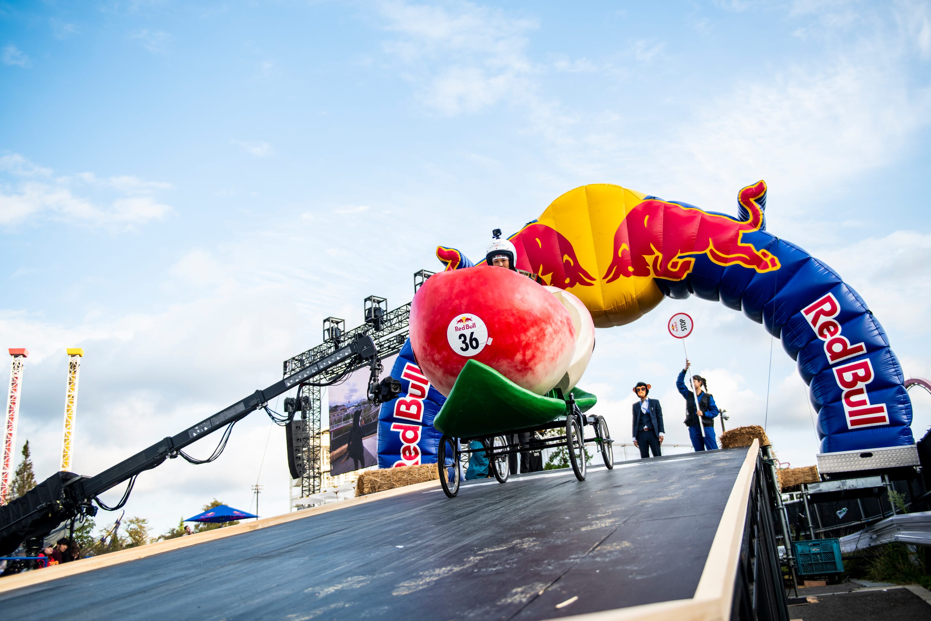 Red Bull Box Cart Raceは、規定に沿って作られた動力を持たない手作りのカートを使って、カーブやジャンプ台が設置された坂道コースを使用し、タイム、カートの創造性、レース前のパフォーマンス、以上3つの基準で競うレース。