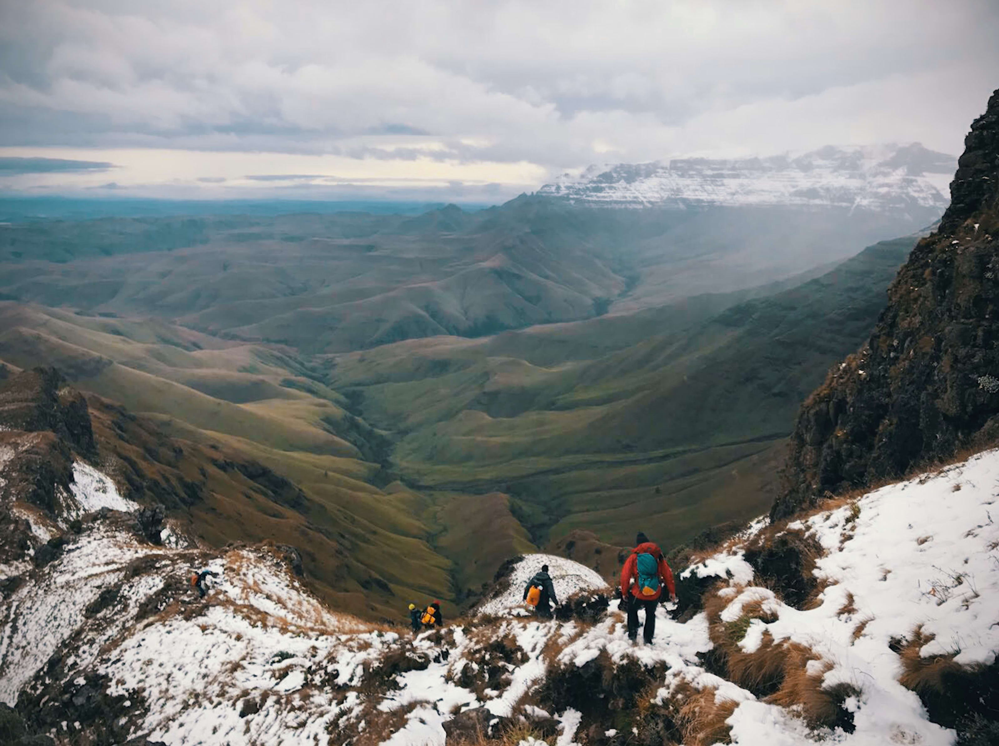 ノース・ドラケンスバーグ・トラバースでのトレッキングでは、ドラケンスバーグ山脈最大のハイライトやユニークなテーブルマウンテンと洞窟に囲まれた峡谷を巡りながら、レソト高地の切り立ったクリフから絶景を味わえる。