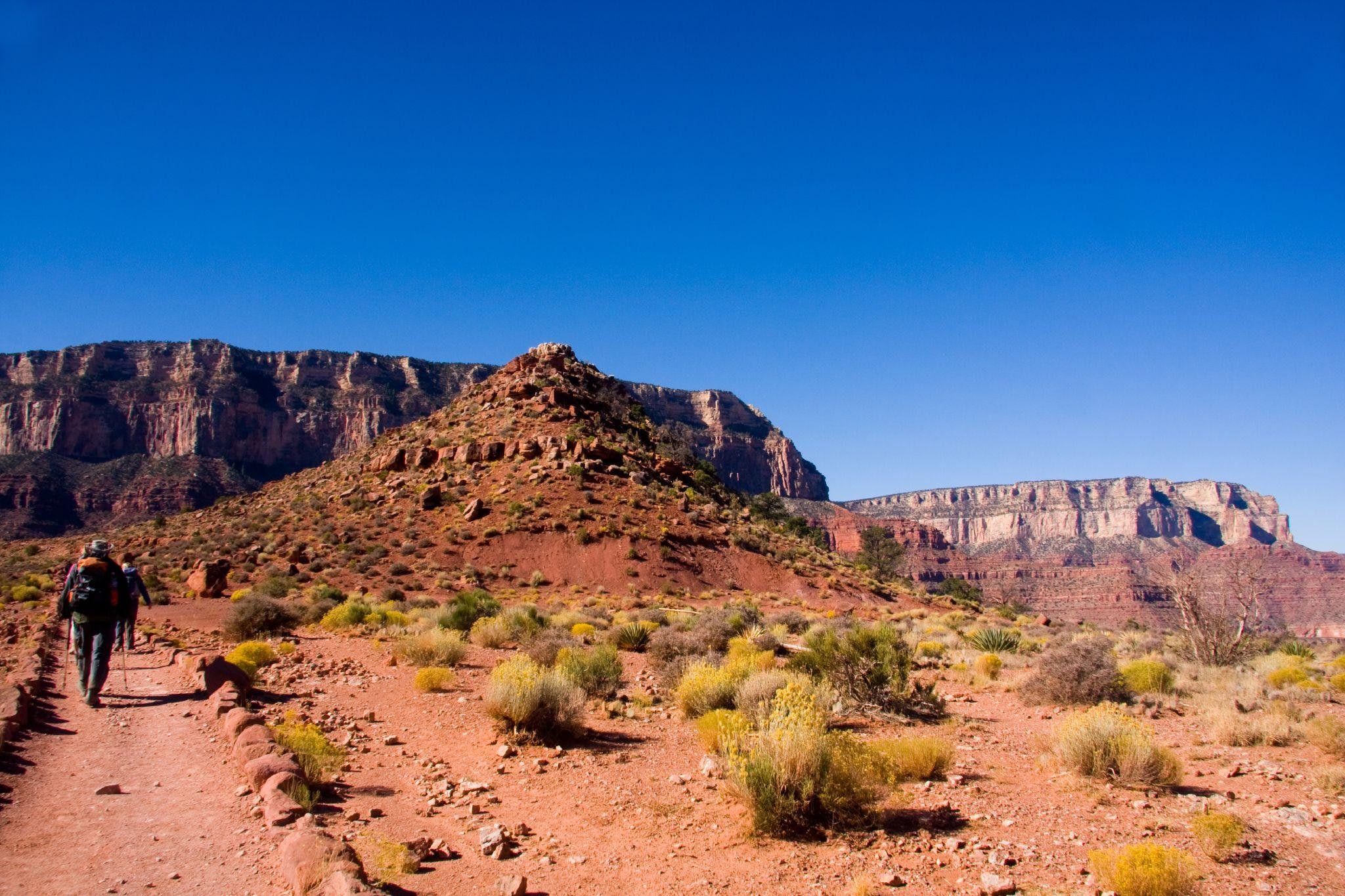 グランドキャニオン北端ノースリムのカイバブ・トレイルからスタートし、コロラド川までの荒れた険しいトレイル(標高差1,800m・長さ23km)を歩いて下ると、グランドキャニオンを下から眺めるという実にユニークな体験ができる。