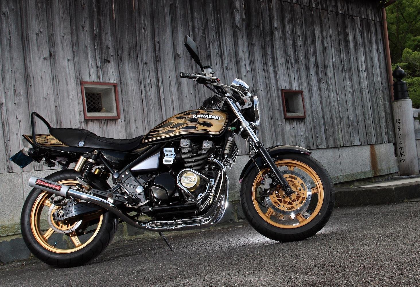 現在、日本のカスタムシーンにおいて、ベース車として人気なのが、暴走黄金期である1970年代後半から1980年代に登場した名車達。その中でも一世を風靡したホンダCBXを筆頭に、ホークⅡ、CBRといったホンダ車が王道とされている。また、スズキのGS、GT380はその独特の排気サウンドに惚れ込むファンが多く、カワサキでは、比較的若い人たちにゼファーが好まれている。その理由は、トラブルが少なく、スピードも速いからだ。